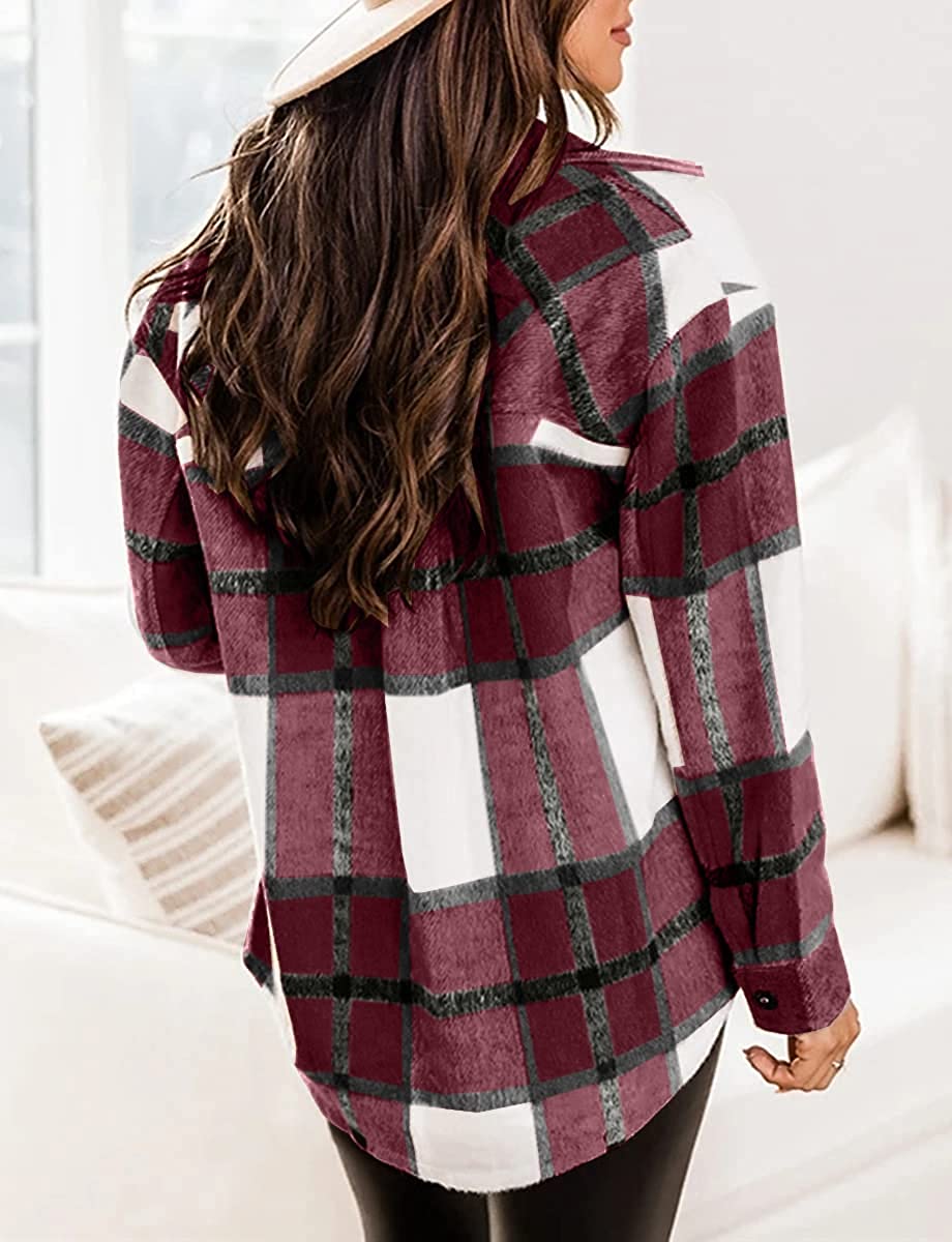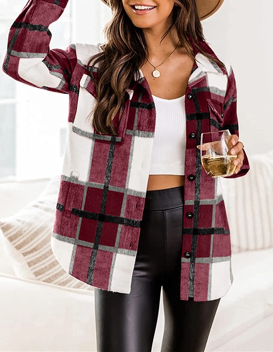 Veatzaer Womens Casual Plaid Shacket Wool Blend Button Down Long Sleeve Shirt Jacket with Pocket
