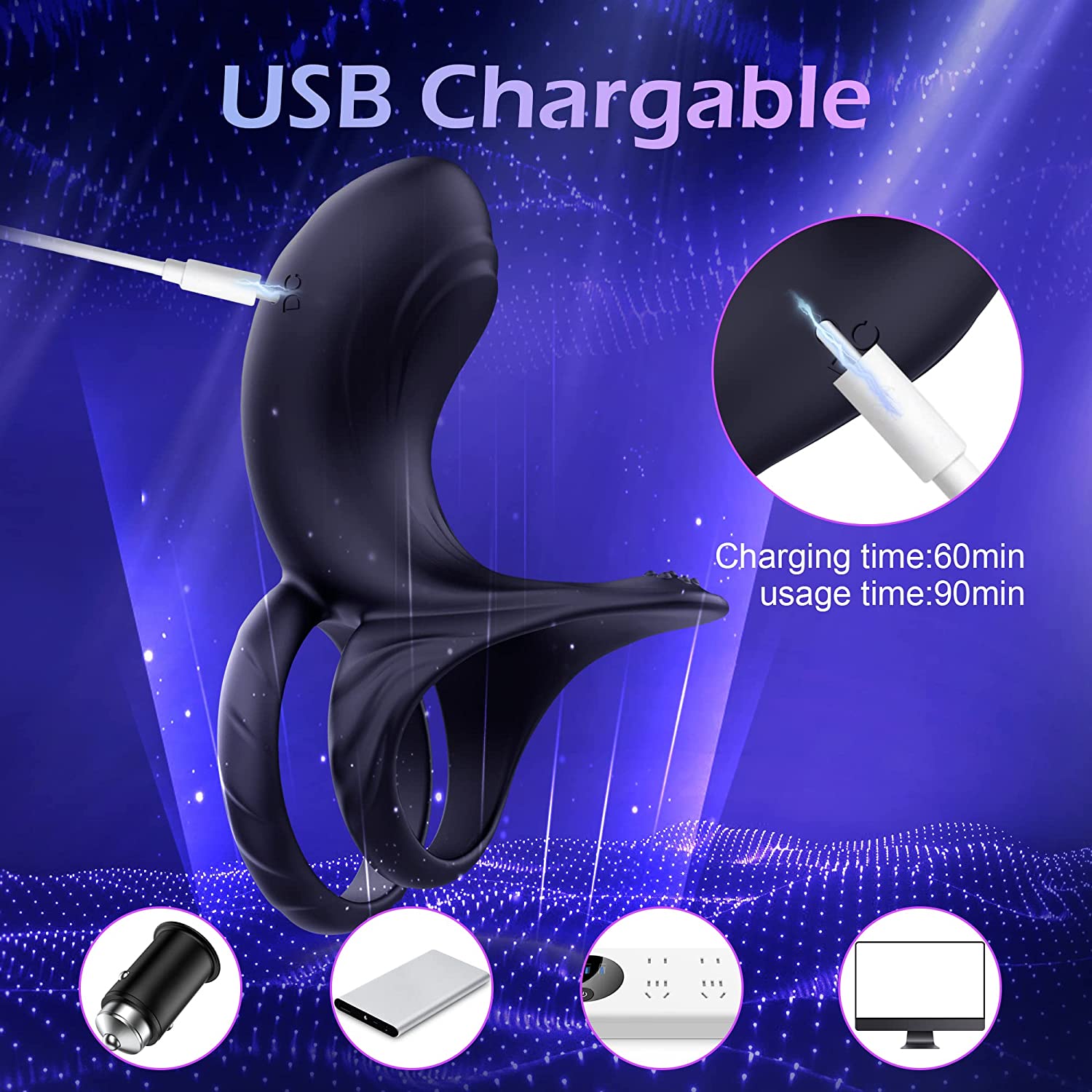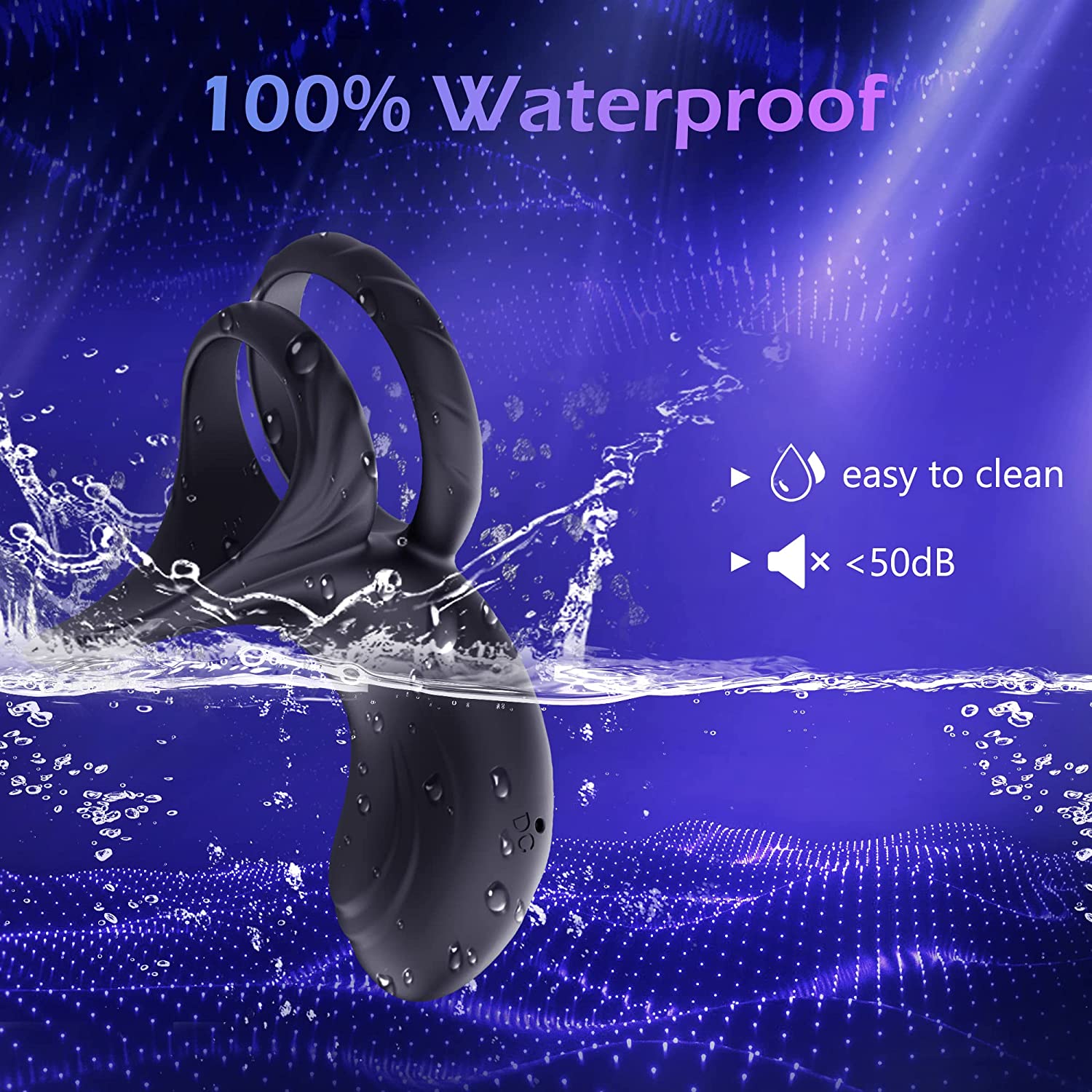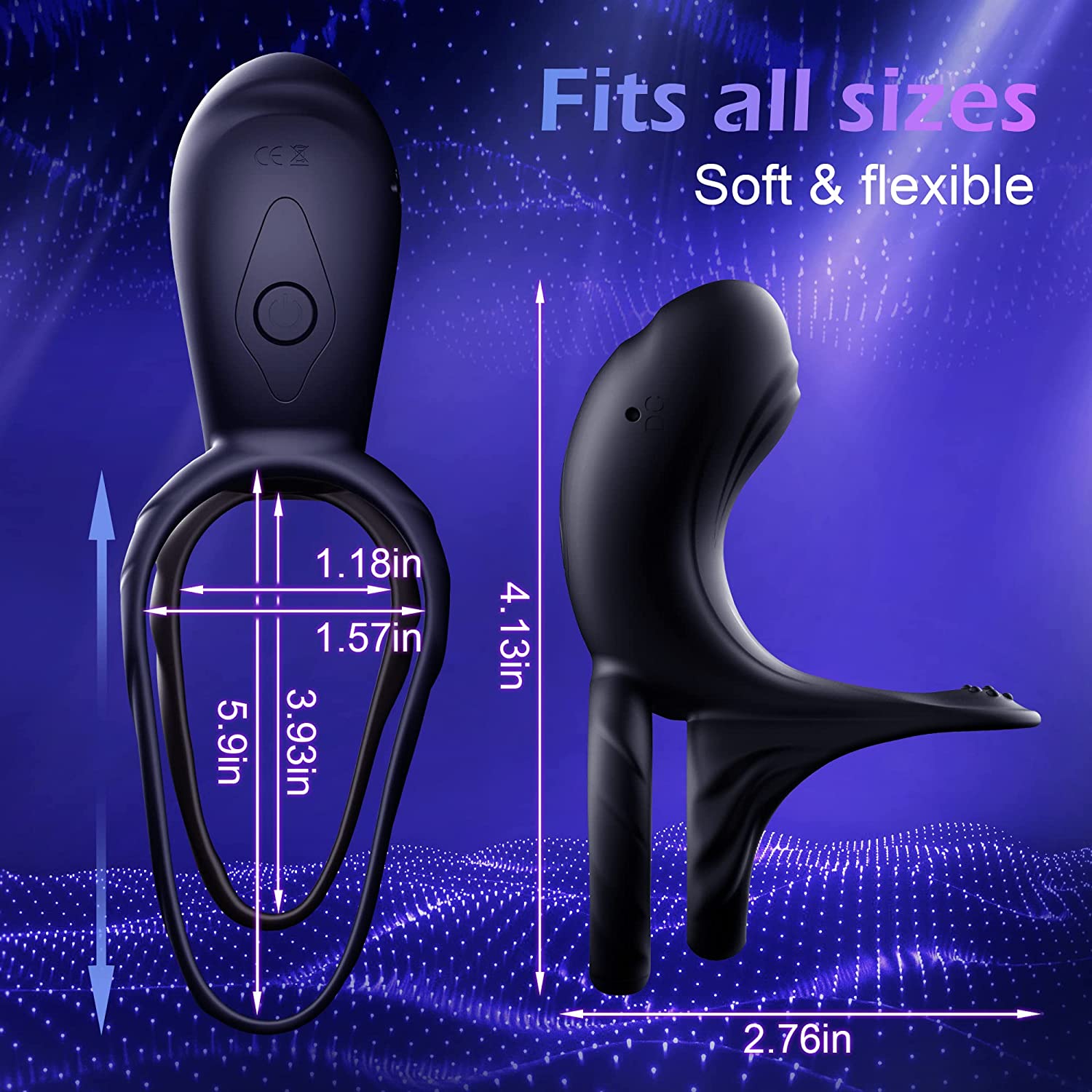 Vibrating Cock Ring, FOBONO Silicone Penis Rings with 10 Intense Vibration Modes, Double Ring Mens Vibrator for Longer Harder Stronger Erection, Improve Sexual Performance, Adult Sex Toys & Games