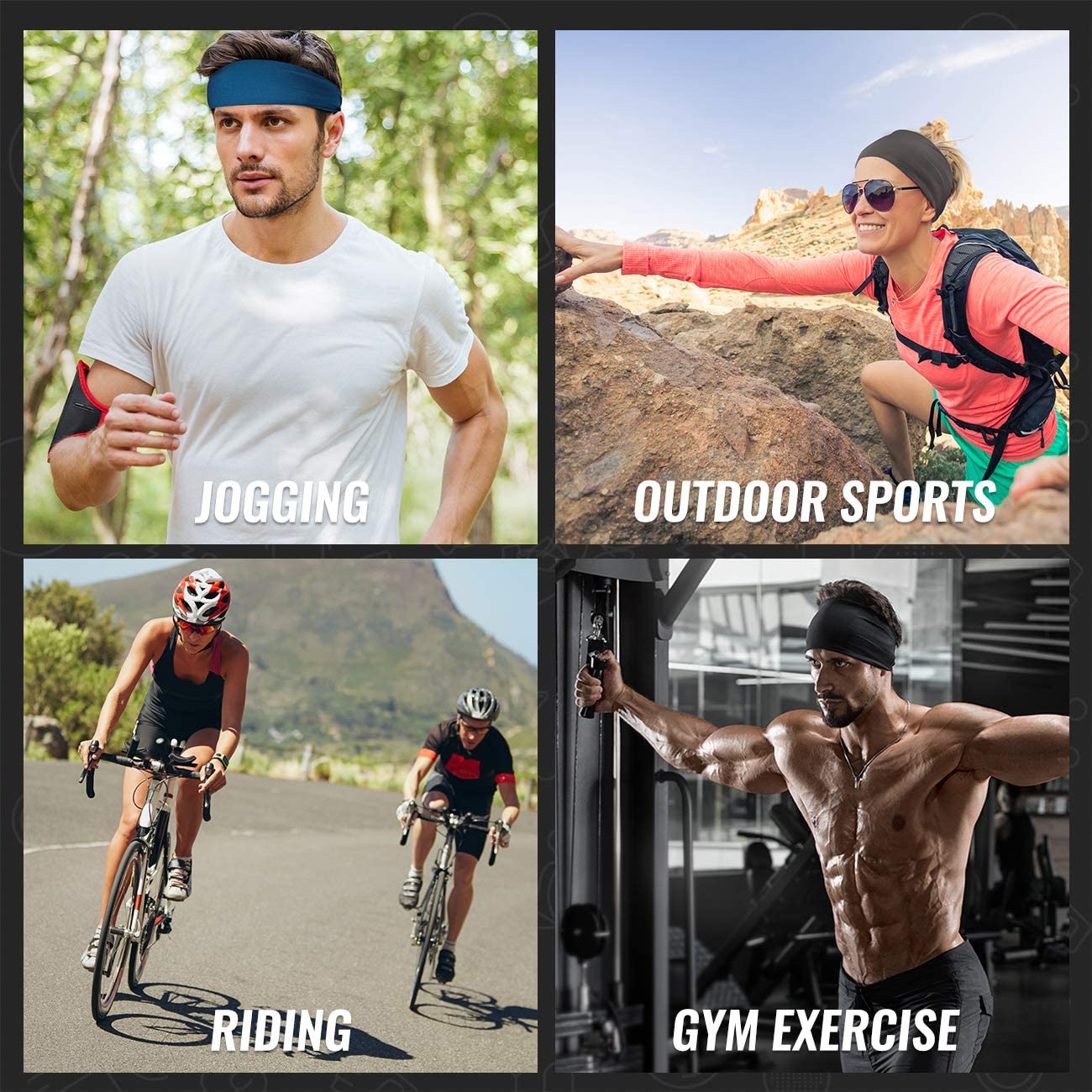 Vinsguir Headbands for Men (4 Pack)- Sweat Band, Sports Mens Headband, Workout Accessories, Sweat Wicking Head Band Sweatbands for Running Gym Training Tennis Basketball Football, Unisex Hairband
