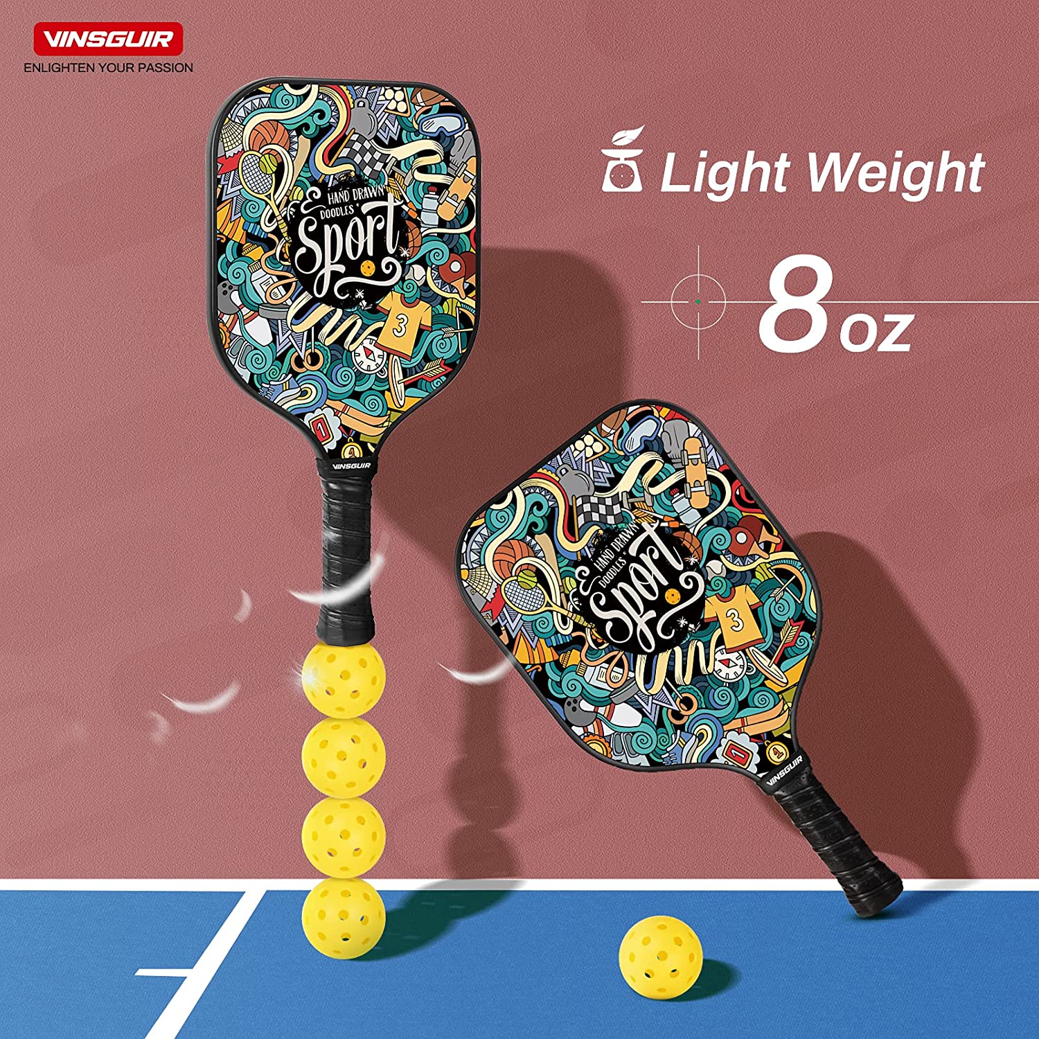 Vinsguir Pickleball Paddles Set-USAPA Approved Graphite Pickleball Set of 2 Rackets and 4 Pickleballs Balls, Pickleball Racquet with Portable Pickleball Bag for Beginners and Professional Players