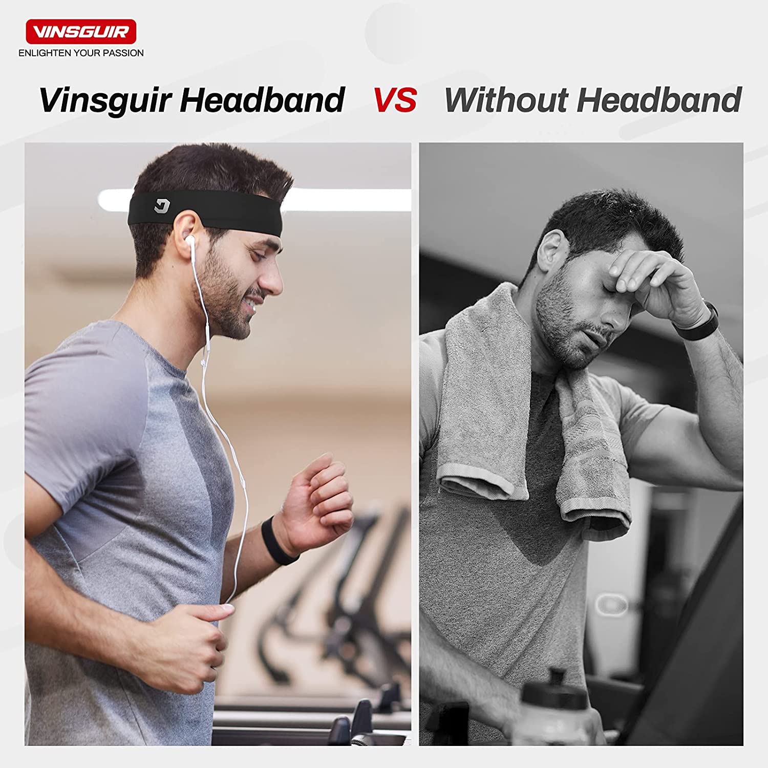 Vinsguir Sports Headbands Pack of 6, Mens Workout Headband Accessories, Sweat Band, Sweat Wicking Head Band Sweatbands for Running Gym Training Tennis Basketball Football, Unisex Hairband