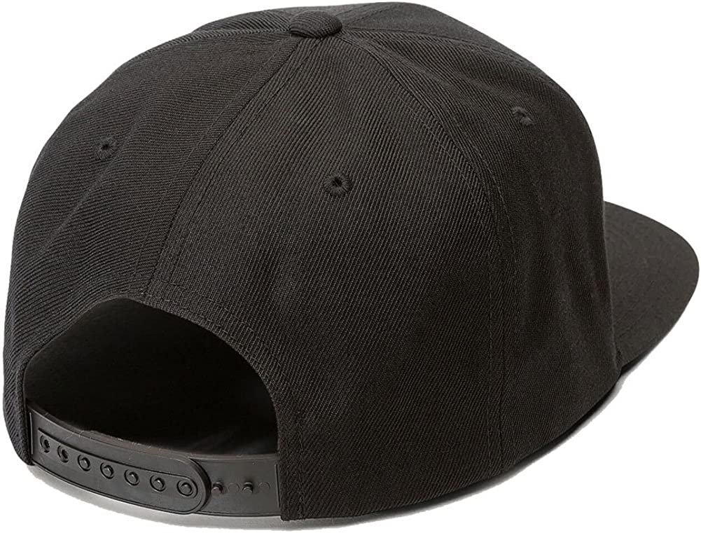 A classic 6 panel flex fit cap with short flat bill, plastic snap back tab adjuster and Volcom stone logo patch at front panel.