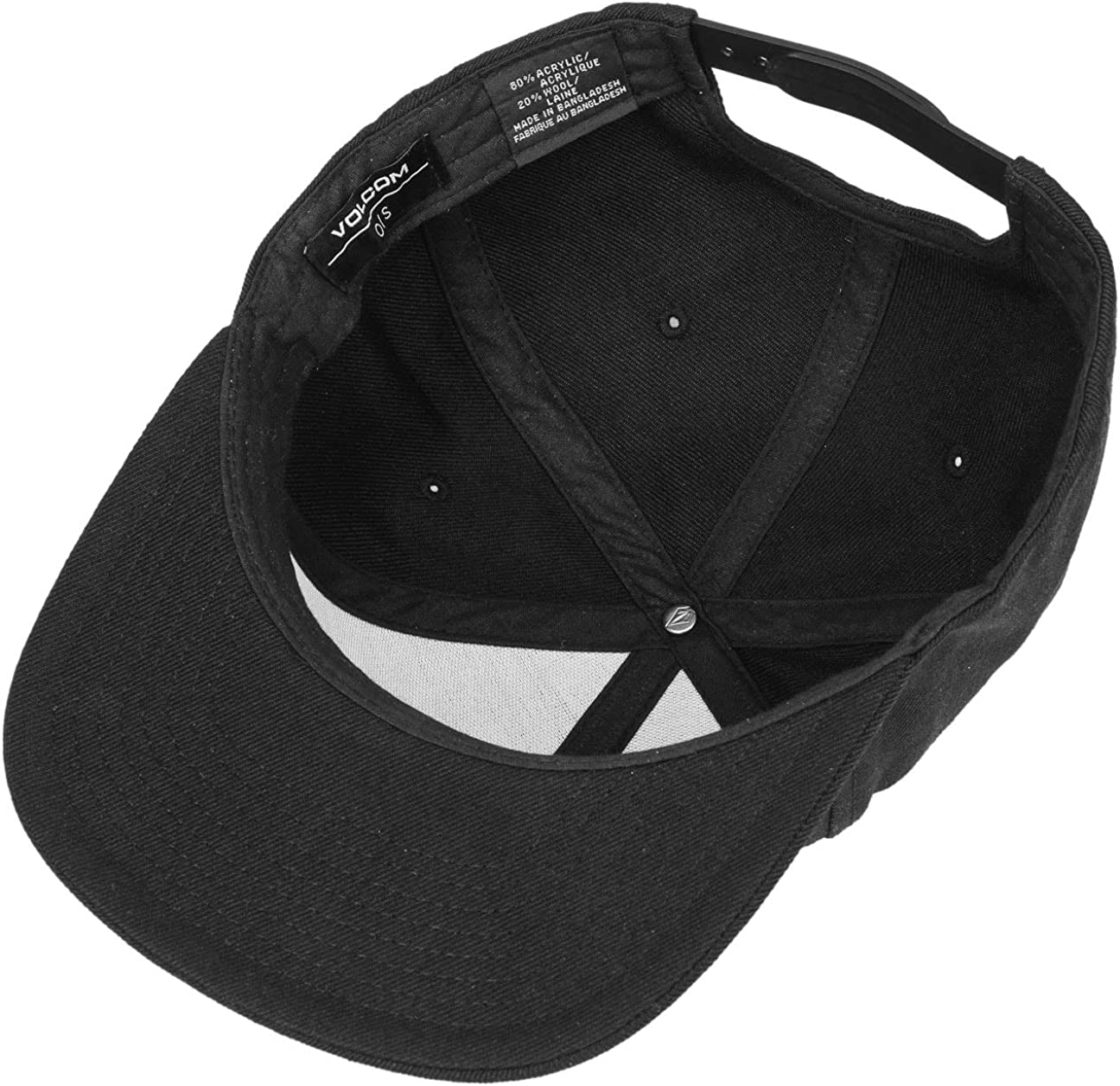 A classic 6 panel flex fit cap with short flat bill, plastic snap back tab adjuster and Volcom stone logo patch at front panel.