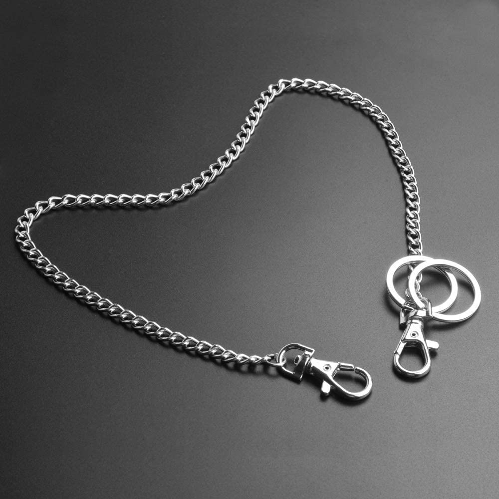 Wallet Chain, Teskyer 18" Silver Keychain with Both Ends Lobster Clasps and Extra 2 Rings for Keys, Wallet, Jeans Pants, Belt Loop, Purse Handbag-Silver
