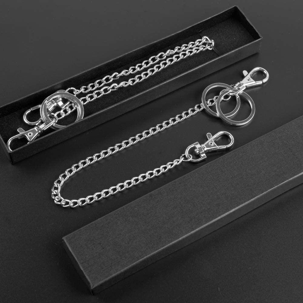 Wallet Chain, Teskyer 18" Silver Keychain with Both Ends Lobster Clasps and Extra 2 Rings for Keys, Wallet, Jeans Pants, Belt Loop, Purse Handbag-Silver