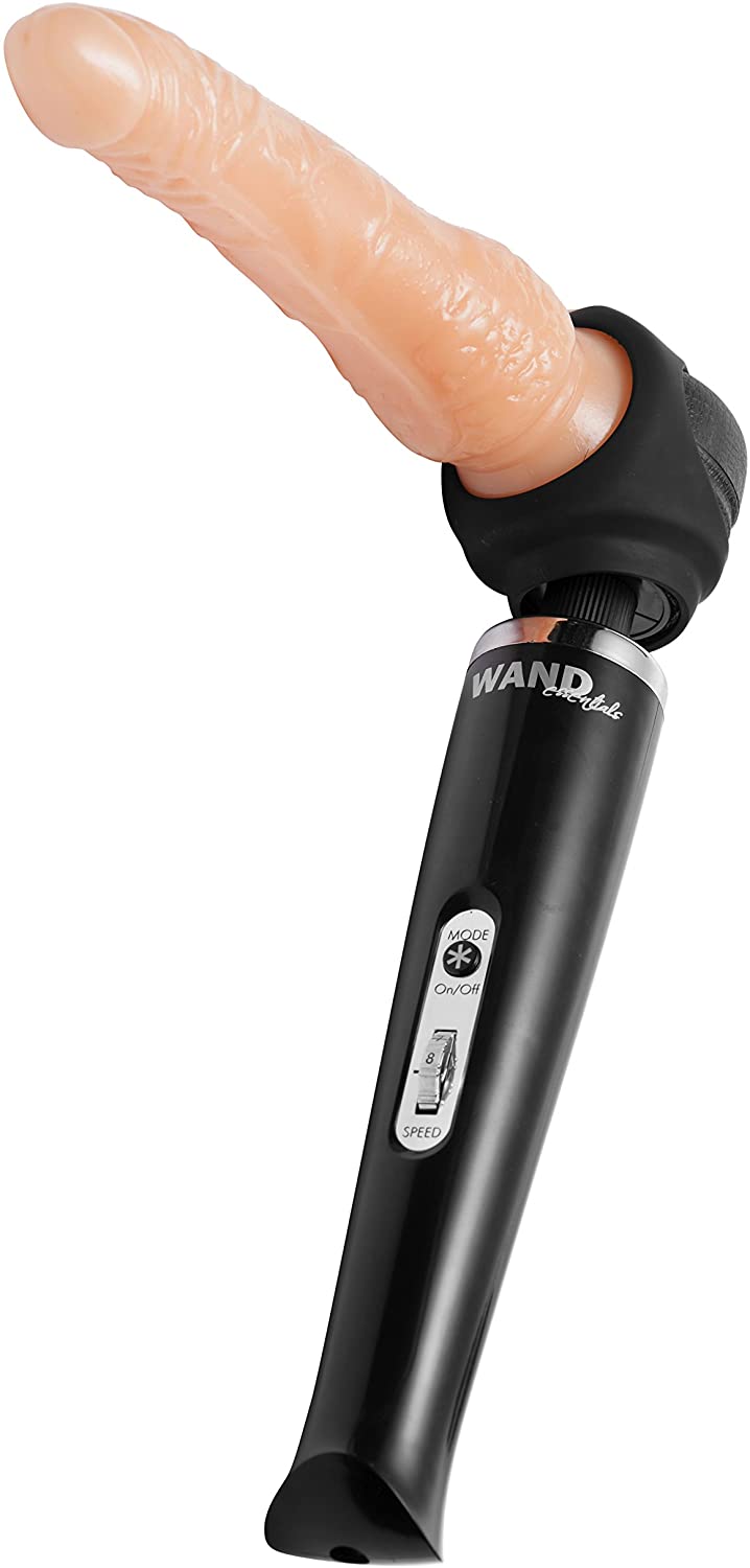 With the Wand Essentials Strap Cap, you can have the ultimate in penetrating pleasure with a strap on harness for your wand! Simply slip your chosen dildo through one of the top or side openings, then secure over your standard size wand. Once secured, position the dildo and turn on the vibration. The cradle is made of premium silicone, so it is hypoallergenic, highly durable, and semi stretchy. Take sensual pleasure to new levels with this unique attachment from Wand Essentials! Measurements: 3 holes total, measuring 1, 2, and 3 inches in diameter. 2.4 inches total diameter Material: Silicone Color: Black Note: Fits standard size wand massagers, including Hitachi. Wand and dildo sold separately