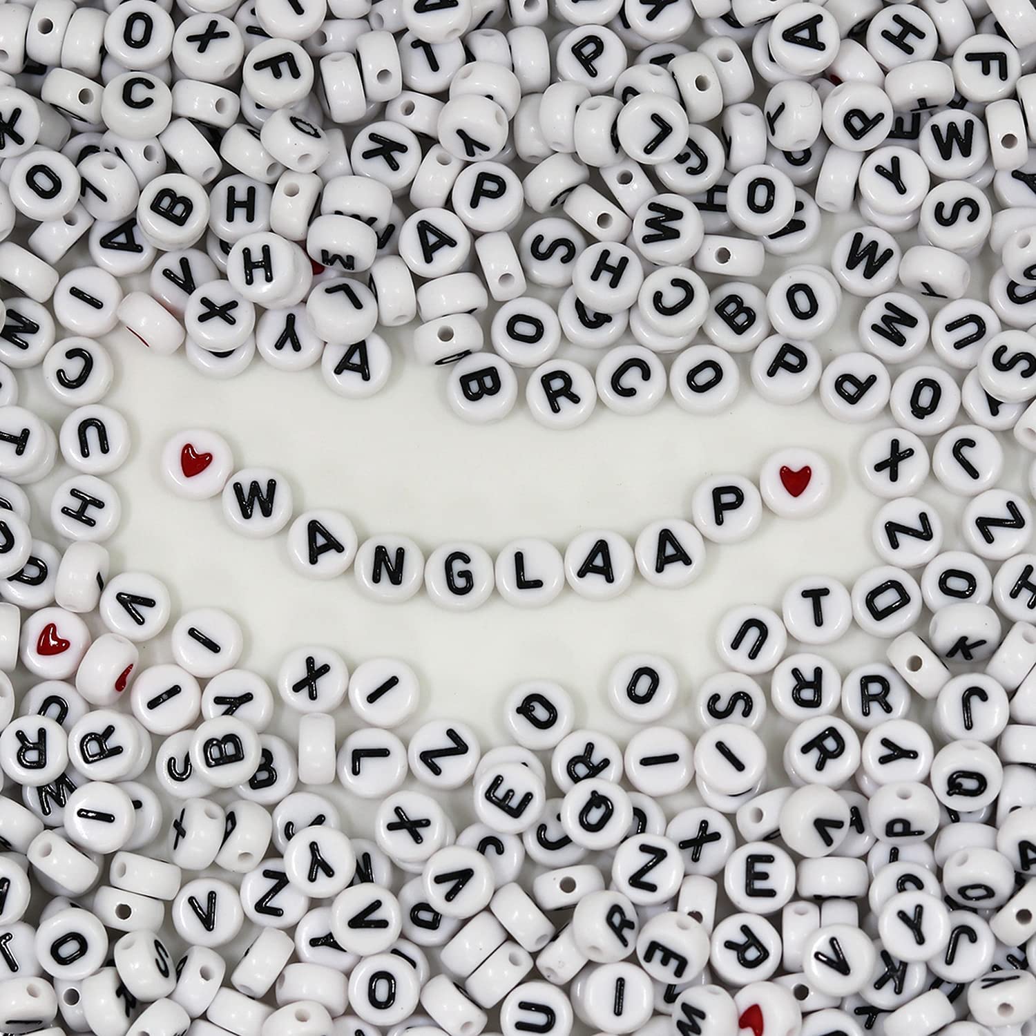 WangLaap 1450Pcs Acrylic 4x7mm Round Letter Beads Kits Alphabet Beads A-Z and Red Heart Black Star Beads for Bracelets Necklaces DIY Jewelry Making (White)