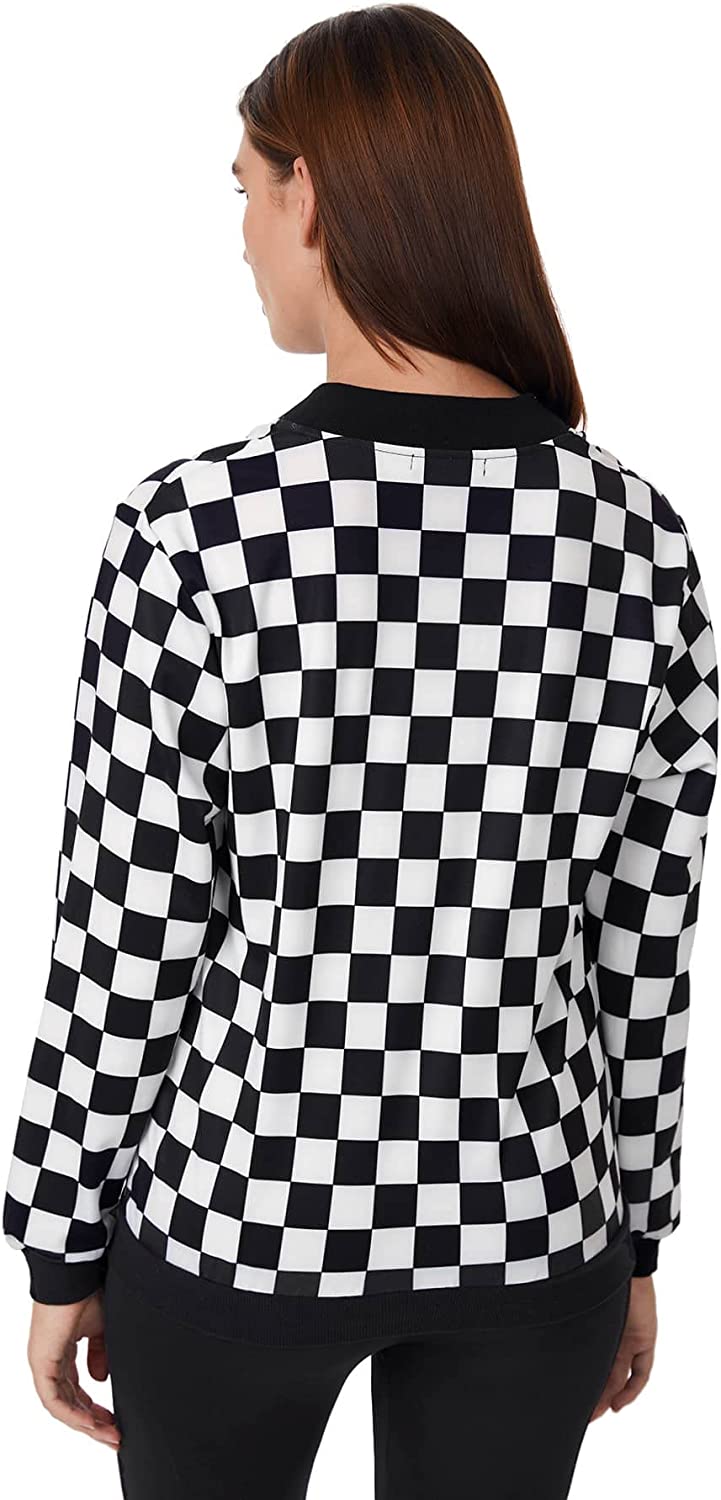 WDIRARA Women's Zip Front Plaid Print Long Sleeve Stand Collar Casual Jacket