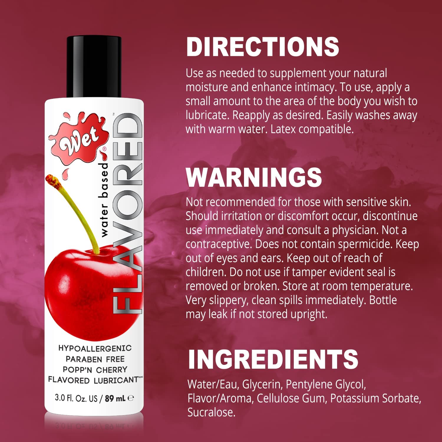 DELICIOUS FLAVORS: Tastes like the real thing, Wet Fruit Flavored Edible Lubricants are a fun way to introduce oral sex to a partner who might be a little hesitant. Apply a few drops of lube to erogenous zones and invite your partner to discover them one by one. Water Soluble: Wet Fruit Flavored Lubricants are pure water based, these formulas are gentle enough for sensitive skin and provide long lasting silkiness. These lubes are latex friendly, washes away easily with warm water and are safe for use with all types of toys. Sugar Free & Gluten Free: Wet Flavored Lubricants do not contain sugar, gluten, or dyes, and will not stain sheets. These edible lubes are formulated to indulge guilt free. These delicious flavors taste just like the real thing, with no artificial aftertaste. Paraben Free: Wet Fruit Flavored Lube are free of parabens, which are used in many other lubricants. Parabens have been linked to irritation in those with sensitivity and allergies. Made In The USA: Manufactured by Trigg Laboratories, Formulated in a cGMP compliant laboratory. Manufacturer trusted for over 30 years. Packaging may vary. The look of the bottle has been updated, but this lube still contains the same premium high-quality ingredients as before.
