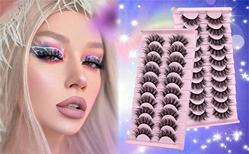 wiwoseo Eyelashes Natural Faux Mink Lashes Wispy Fluffy Curly 3D Effect Fake Eyelashes 10 Pairs Pack