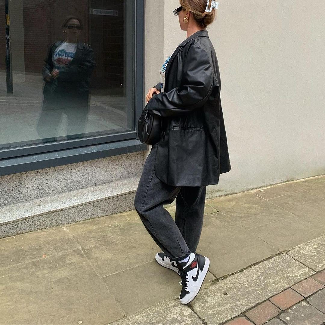 Women Casual Faux Leather Blazer Long Sleeve Button Down Y2K PU Leather Jacket with Pocket