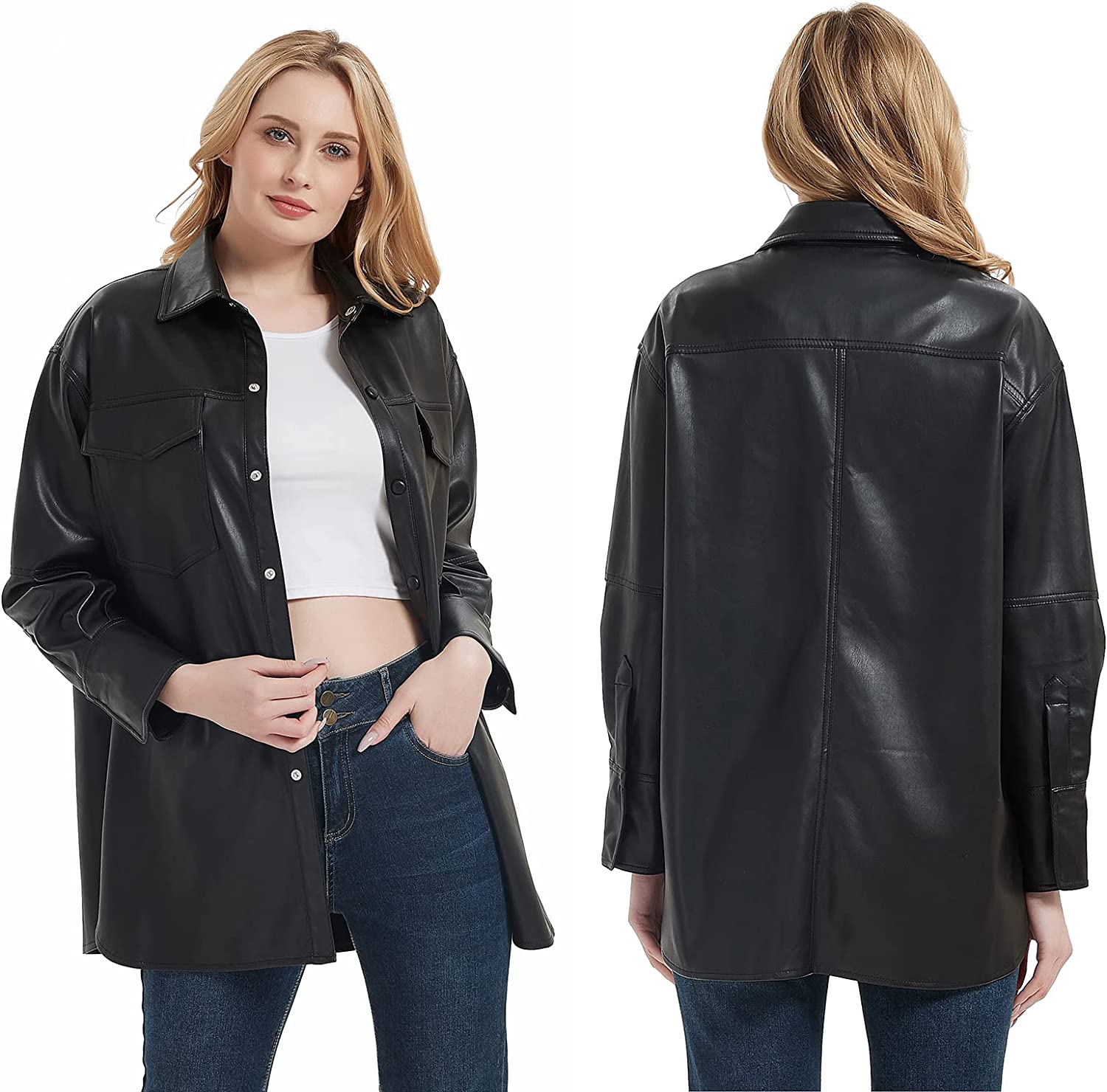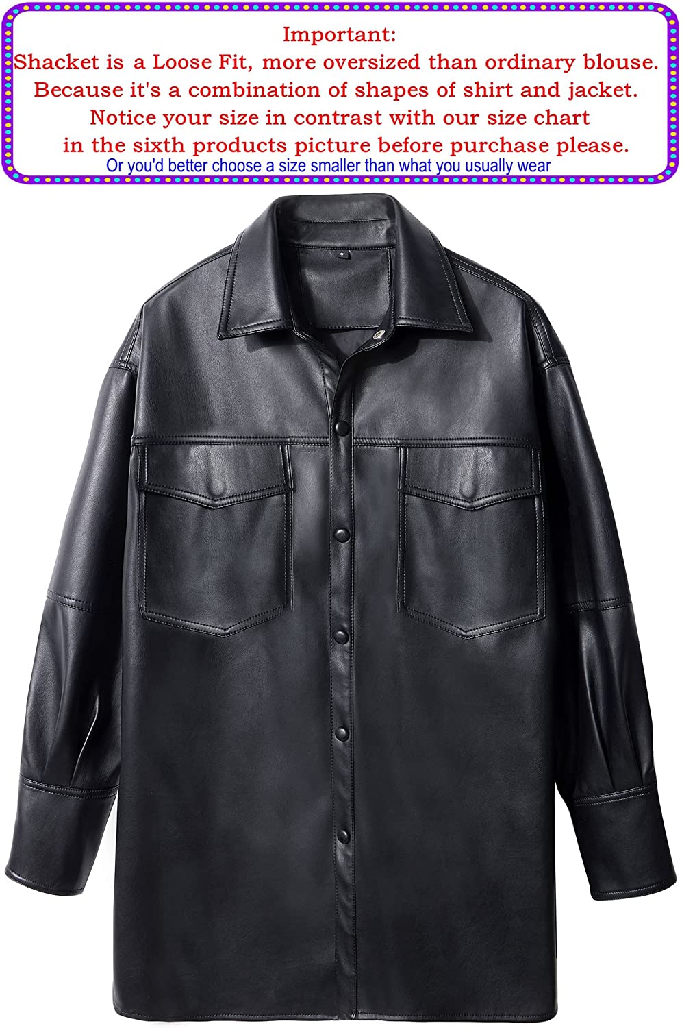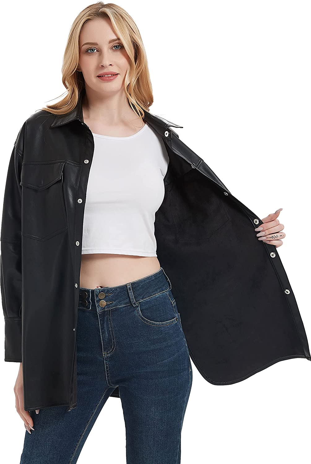 Women Faux Leather Shacket Jacket Blouses 2022 Spring and Fall Fashion, RISISSIDA Button Down Shirts with Breast Pockets