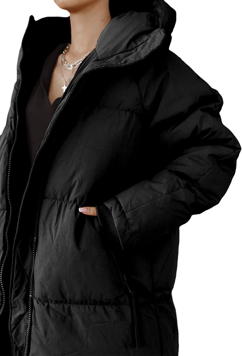 Women Long Quilted Coat Hooded Maxi Length Long Sleeve Puffer Jacket Padded Coat Winter Outerwear