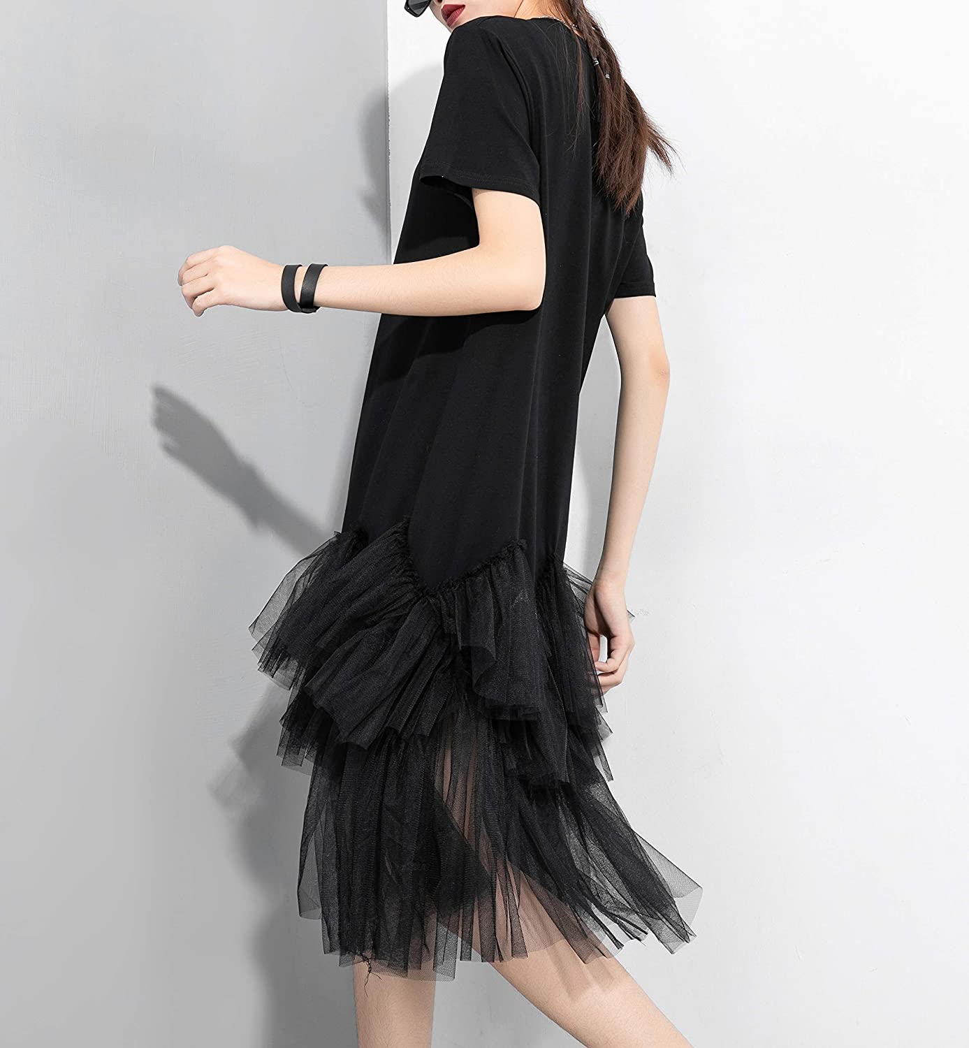 Women Short Sleeve Casual Creweck Tulle Dress Oversized Dresses GY2266