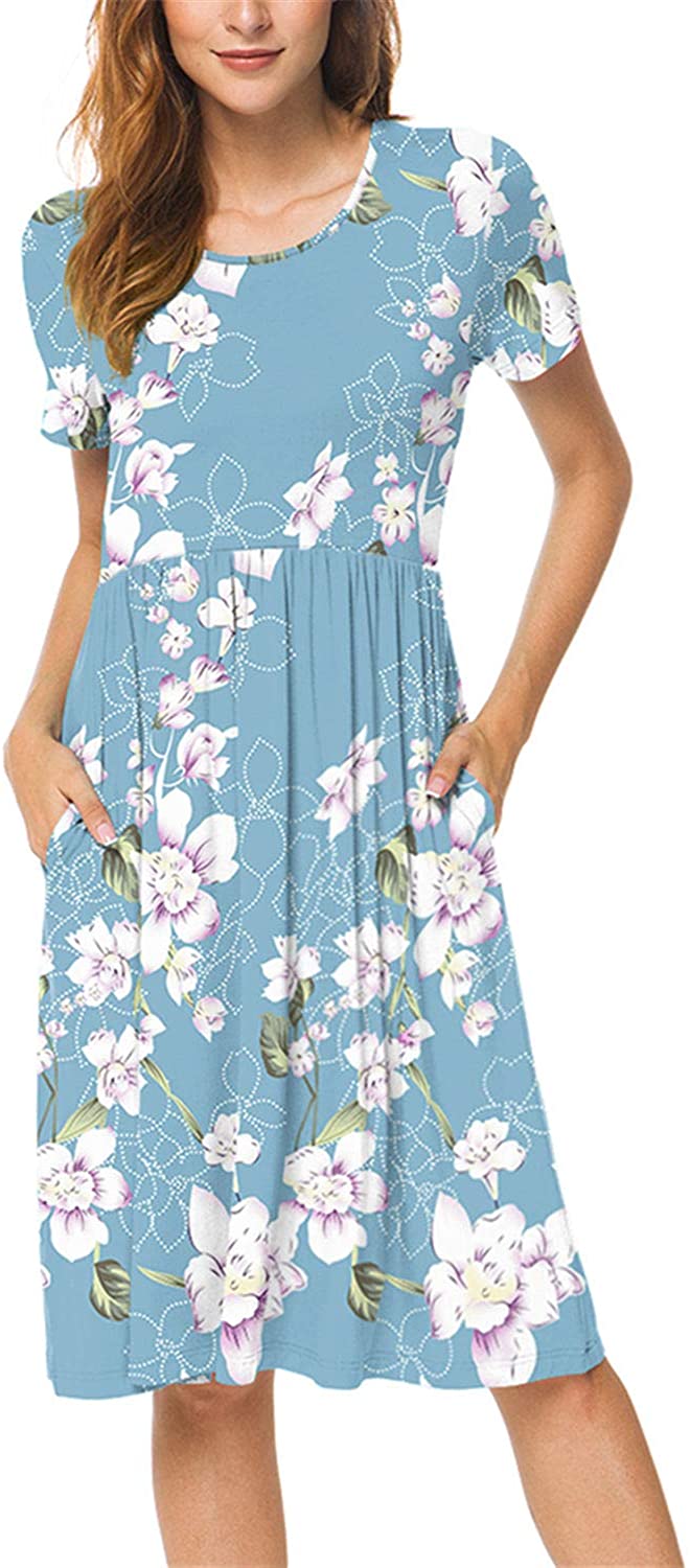 Women Summer Casual Short Sleeve Dresses Empire Waist Dress with Pockets