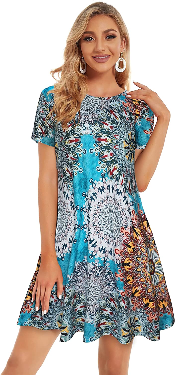 Women Summer Dress Tshirt Beach Sundress Casual Plus Size Flowy Swing Short Sleeve Loose Tunic