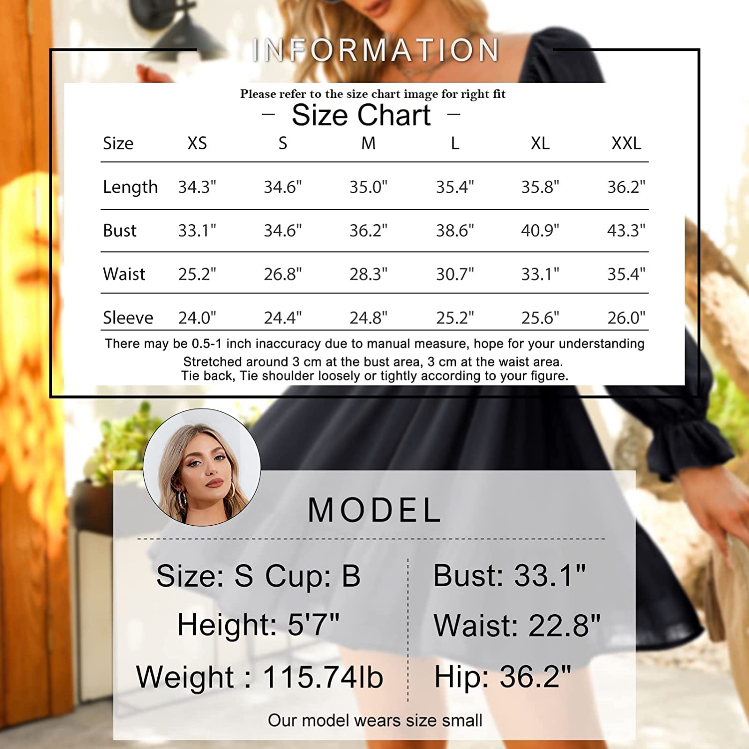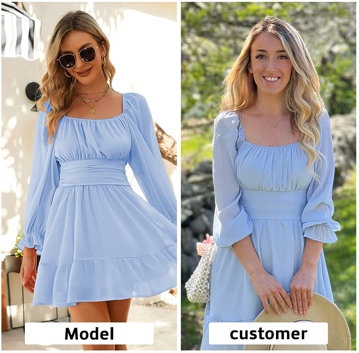 Women Tie Back Summer Dresses Long Lantern Sleeve Square Neck Ruffle Elastic Waist Aline Casual Mini Dress