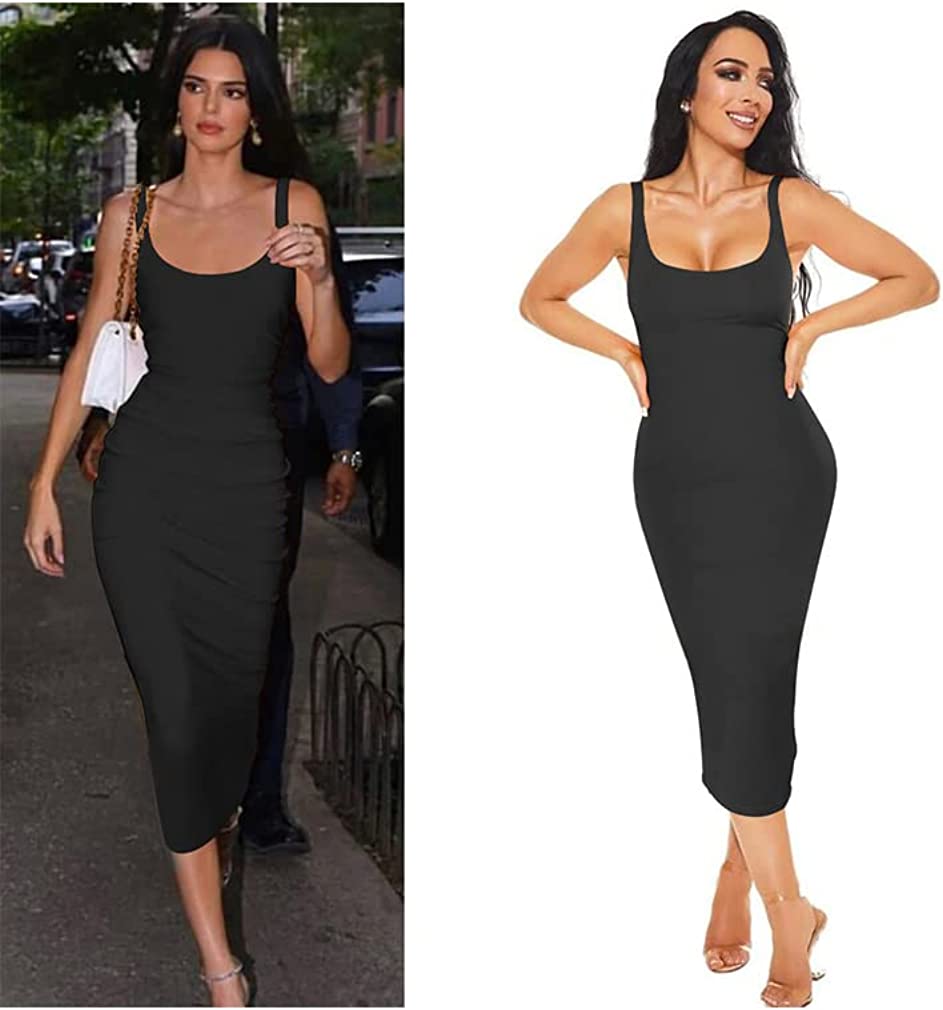 Women's Basic Tank Bodycon Sleeveless Solid Casual Long Dress