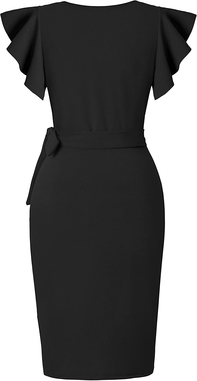 Womens Deep V Neck Ruffle Sleeve Sheath Casual Cocktail Party Work Faux Wrap Dress