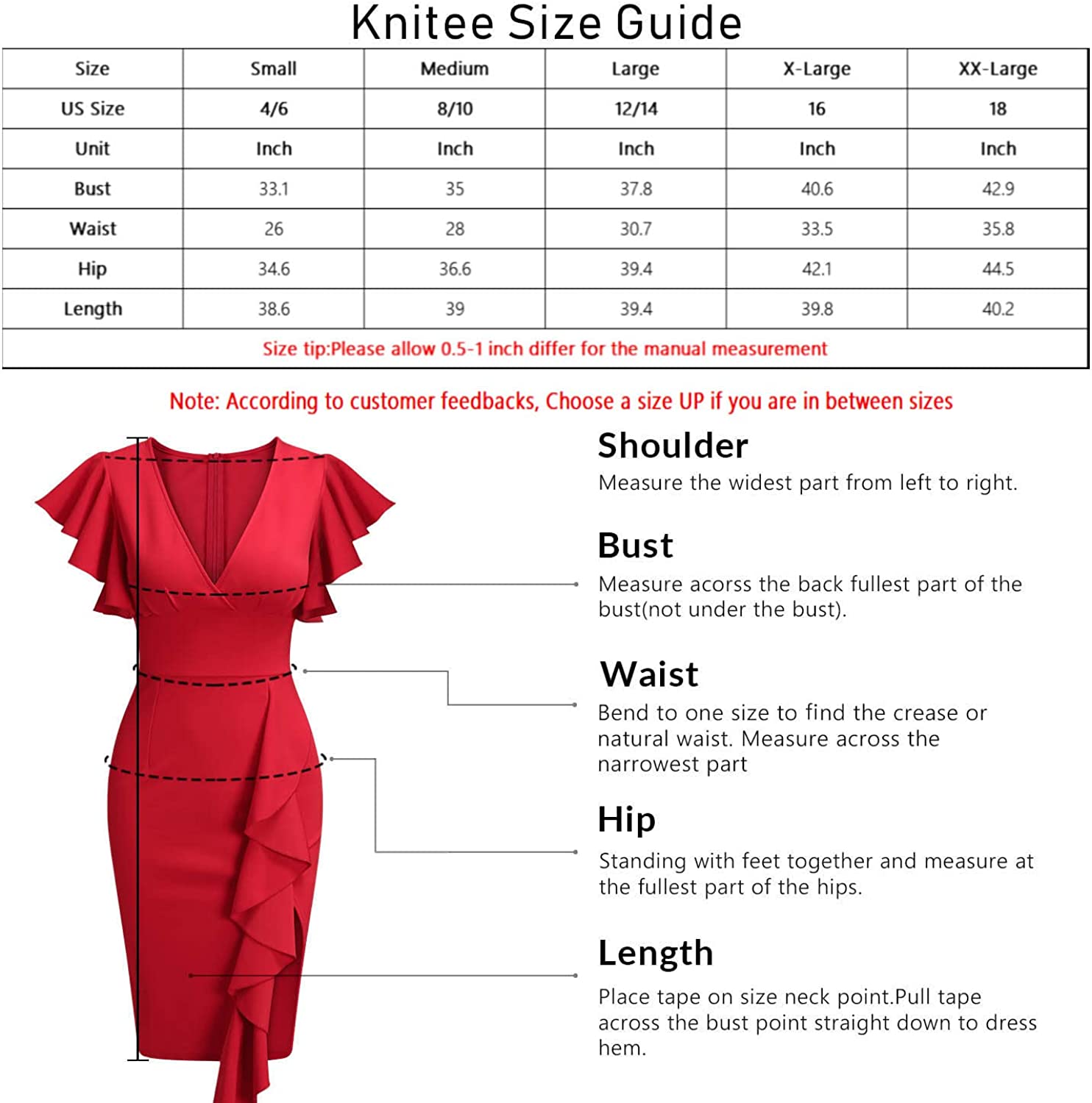 Women's Deep-V Neck Ruffle Sleeves Cocktail Party Pencil Slit Formal Dress