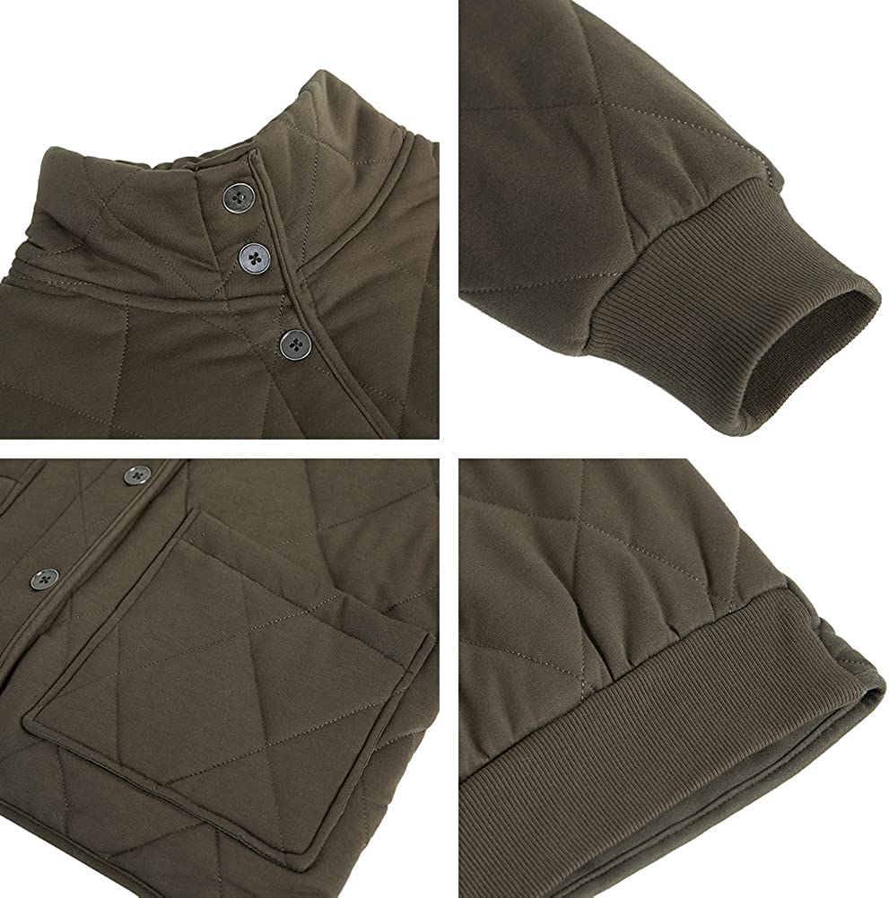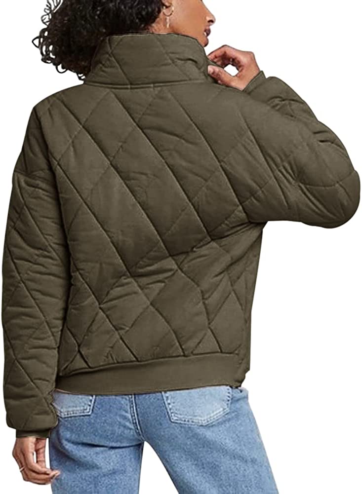 Womens Dolman Quilted Jackets Casual Button Down Winter Long Sleeve Stand Neck Lightweight Warm Coat