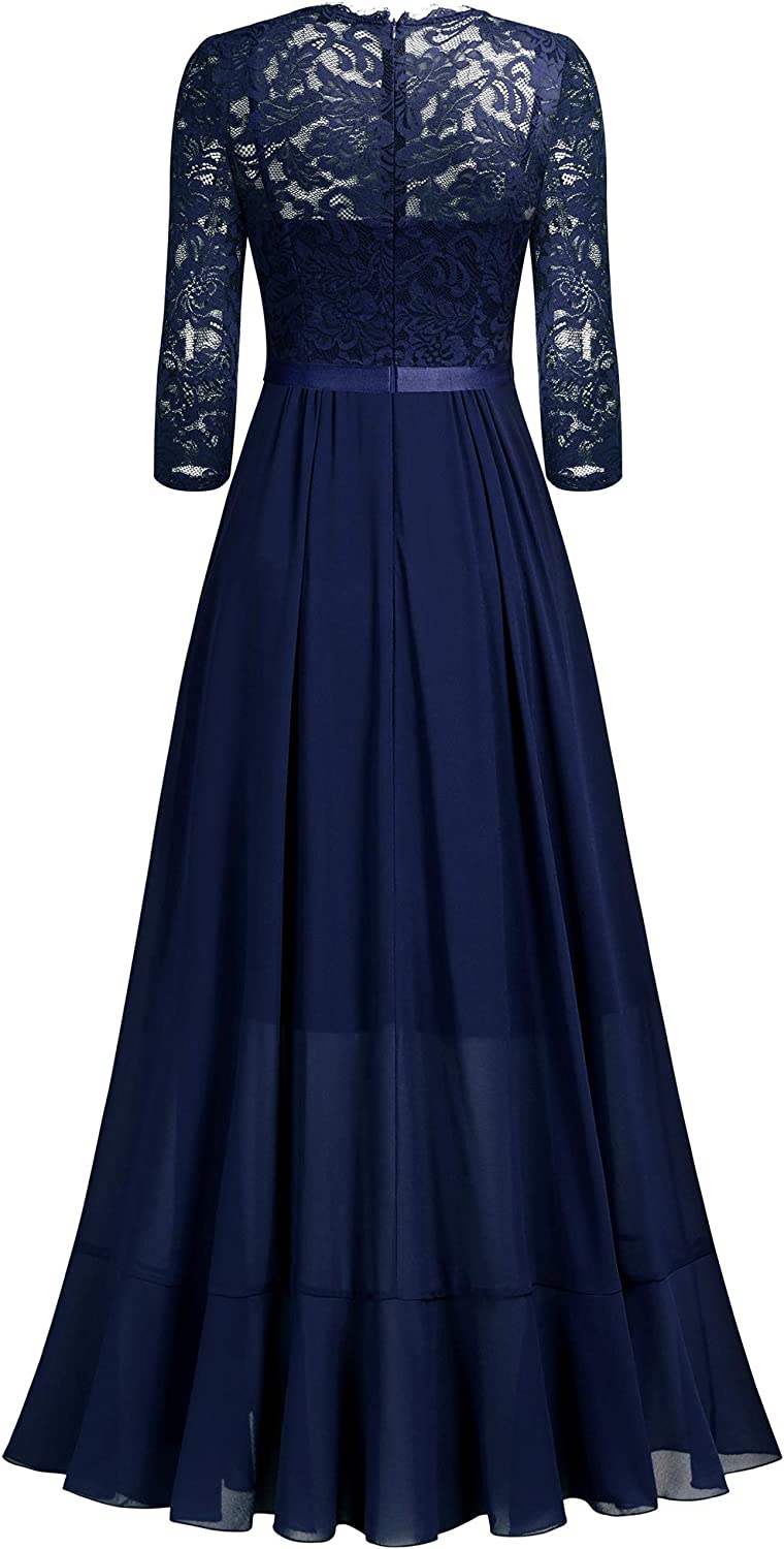 Women's Elegant Floral Lace Ruffle Bridesmaid Maxi Dress
