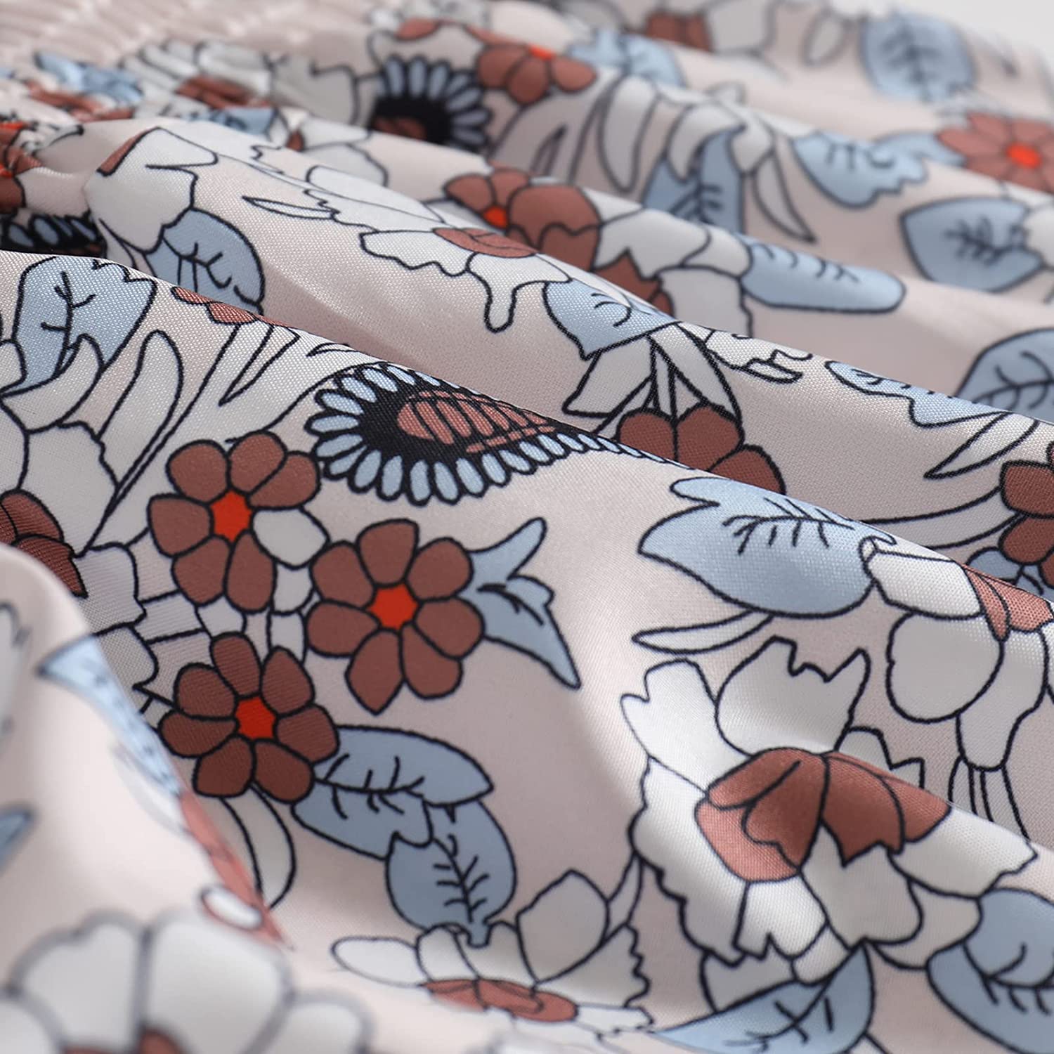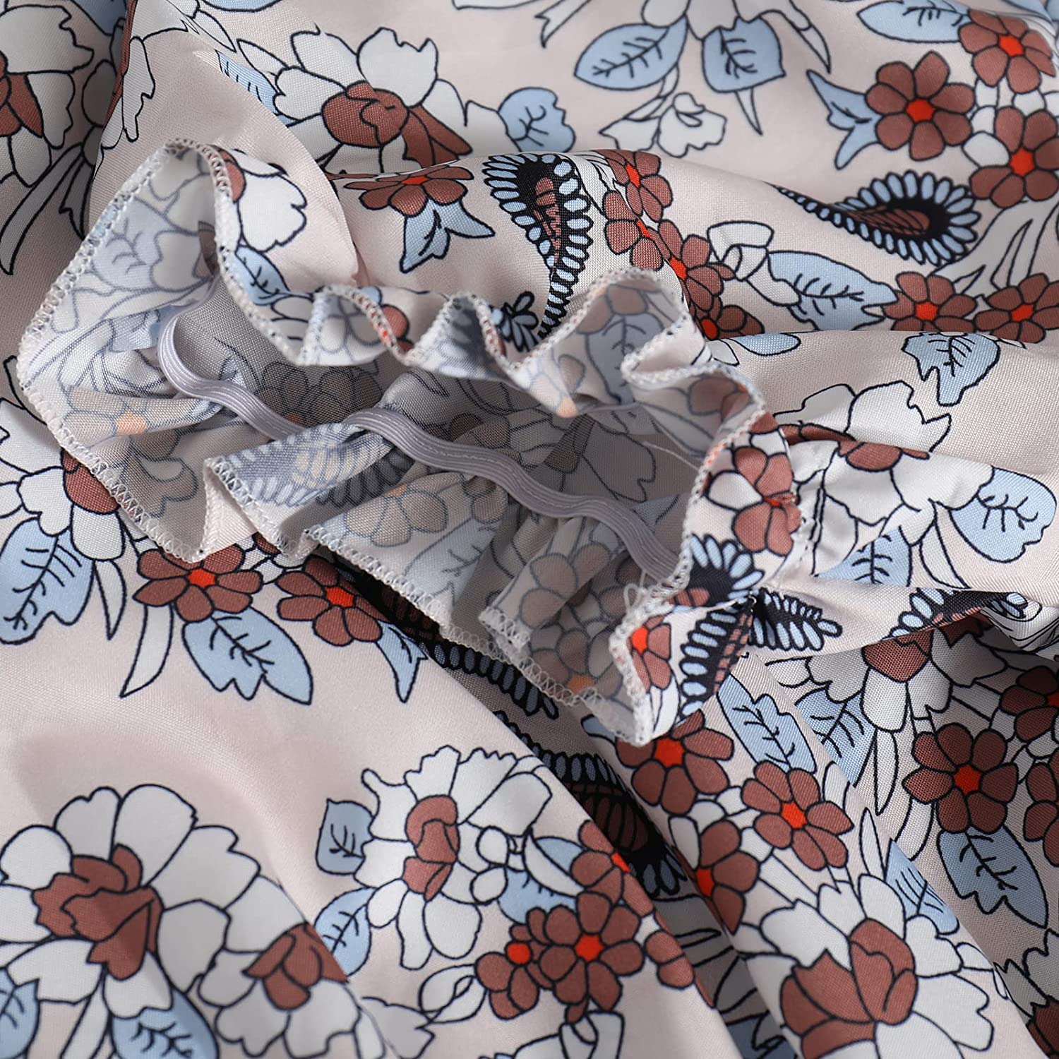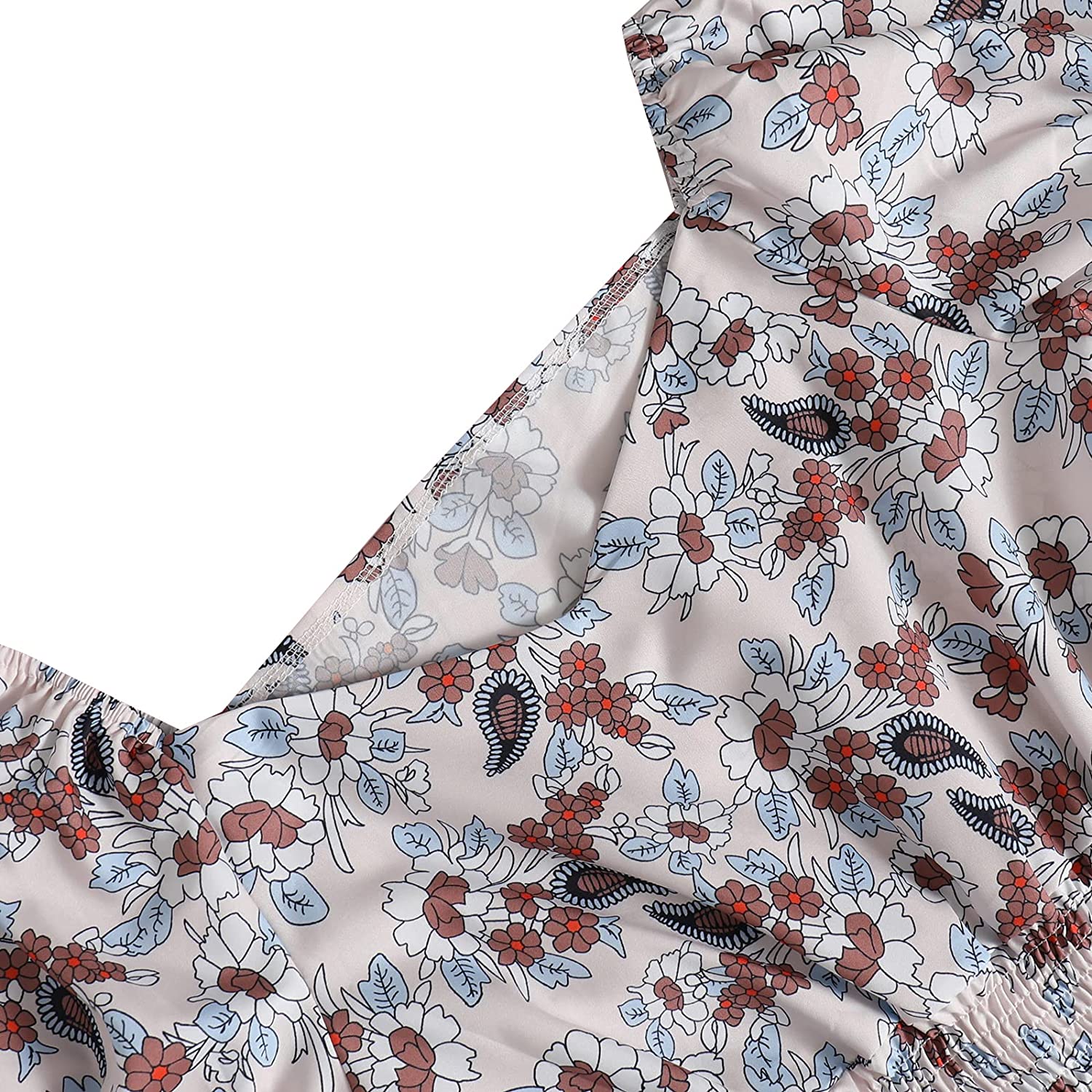 Women's Floral V-Neck Short Sleeve Dress Ruffle Slim Waist Dress