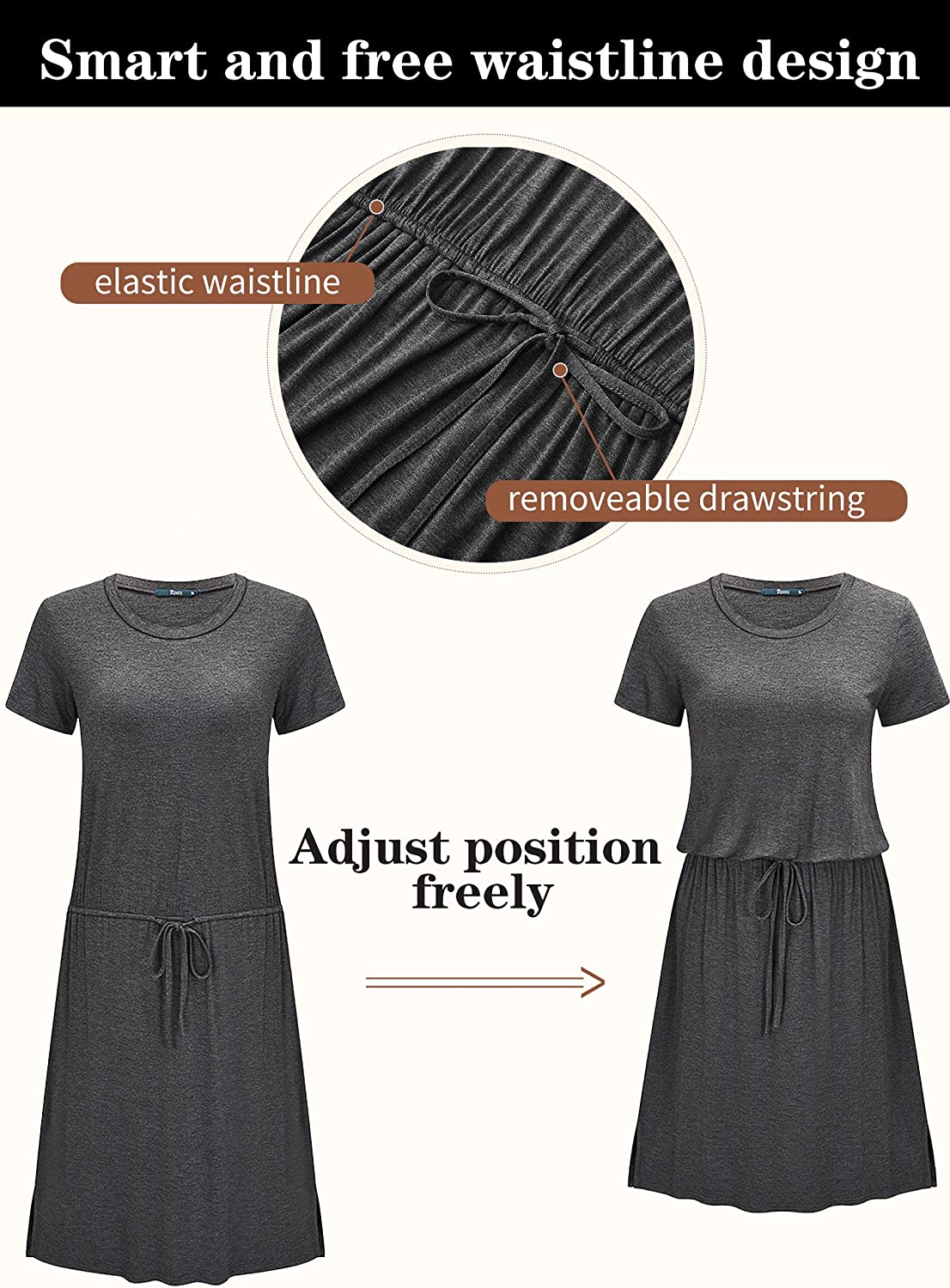 Women's Hide Belly Blouson Knee Length Dress with Pockets