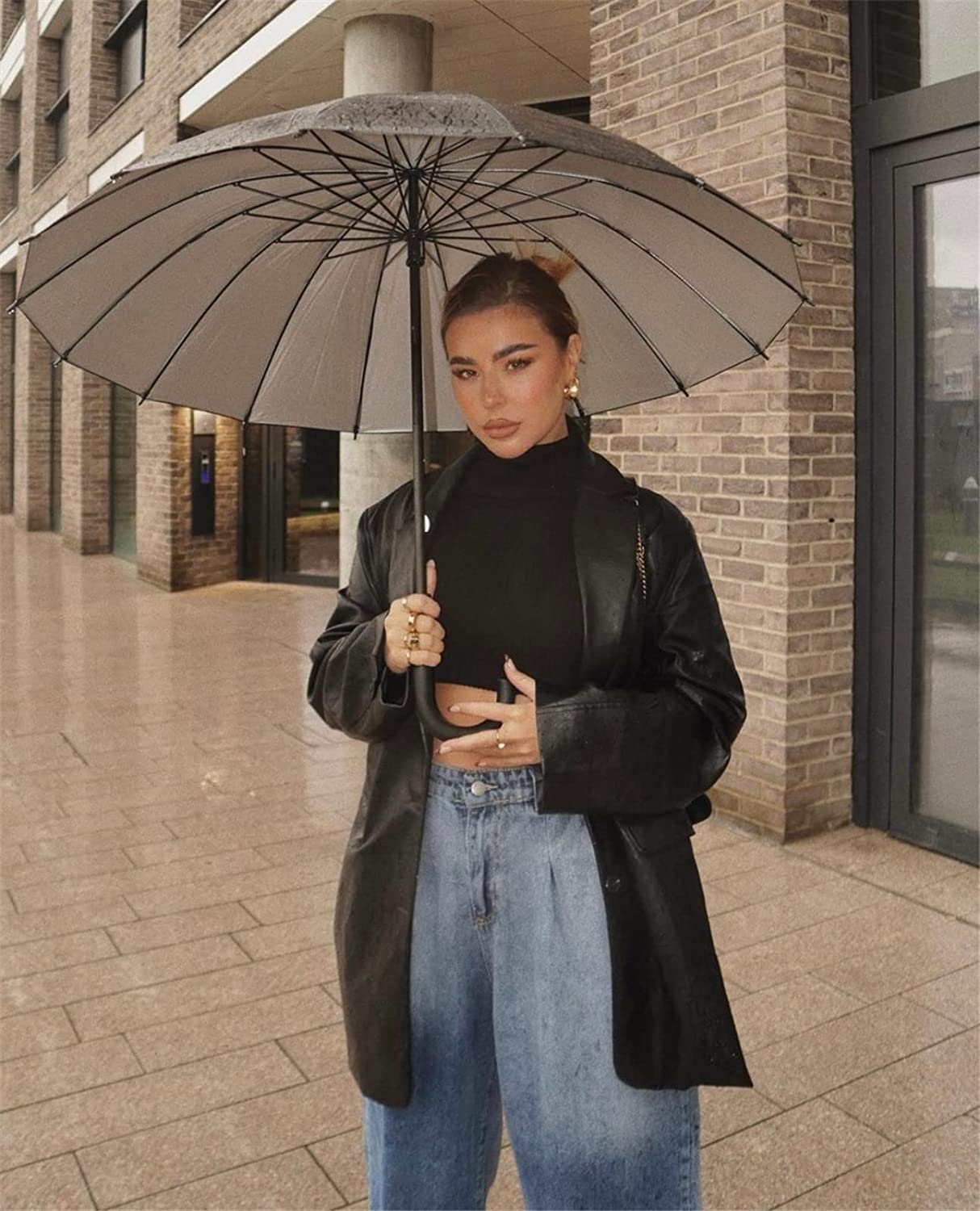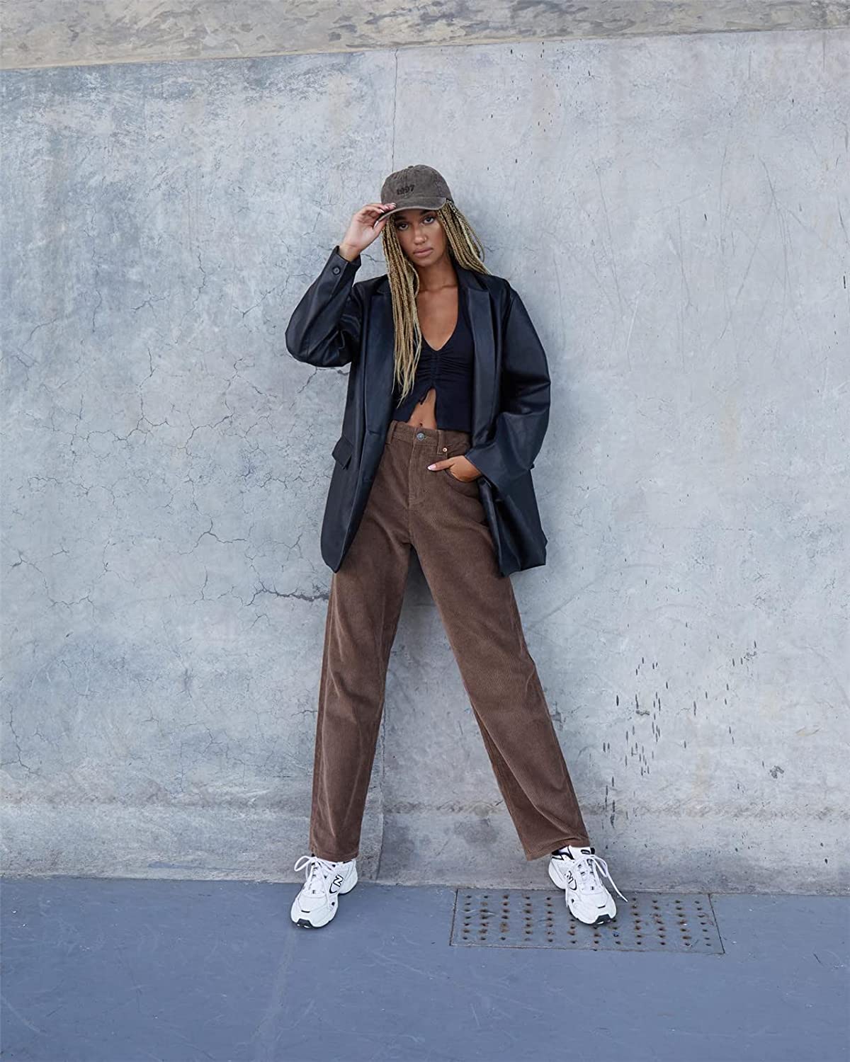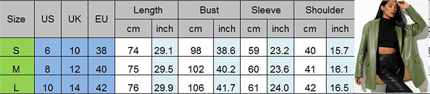 Womens Leather Blazer Coat, Long Sleeve Lapel Faux PU Leather Jacket Button Front Trench Coat