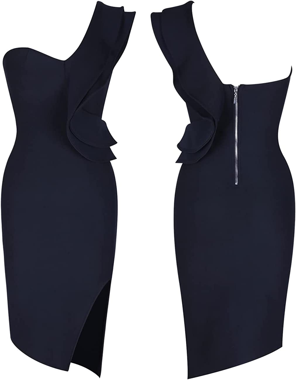 Women's One Shoulder Sleeveless Knee Length Side Split Fashion Bandage Dress