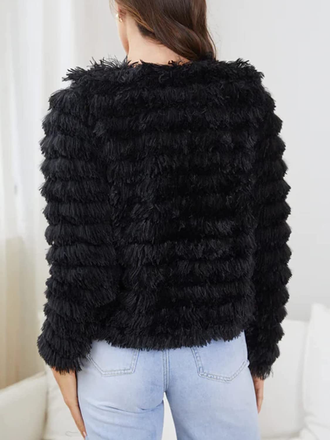 Womens Open Front Faux Fur Cardigan Vintage Parka Shaggy Jacket Coat