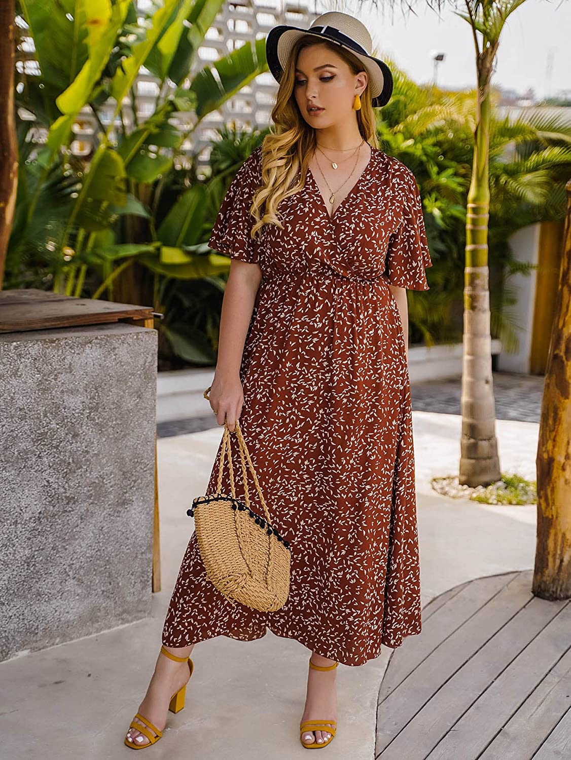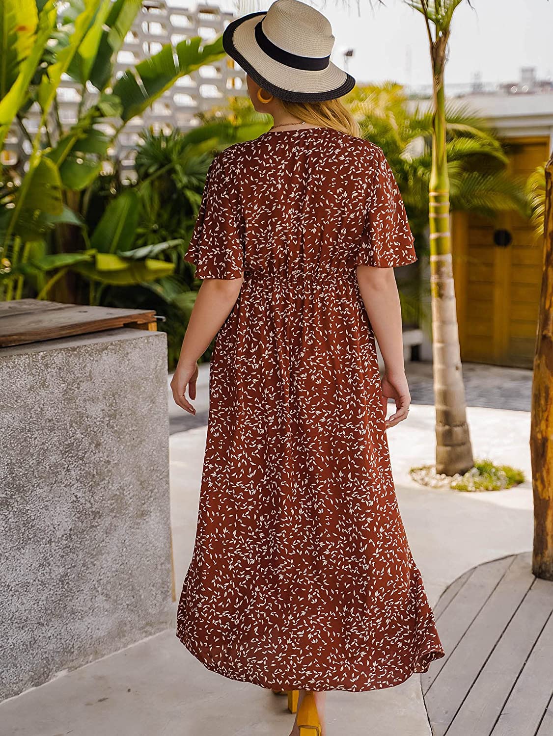 Women's Plus Size Boho Floral V Neck Short Sleeve A Line Long Dress