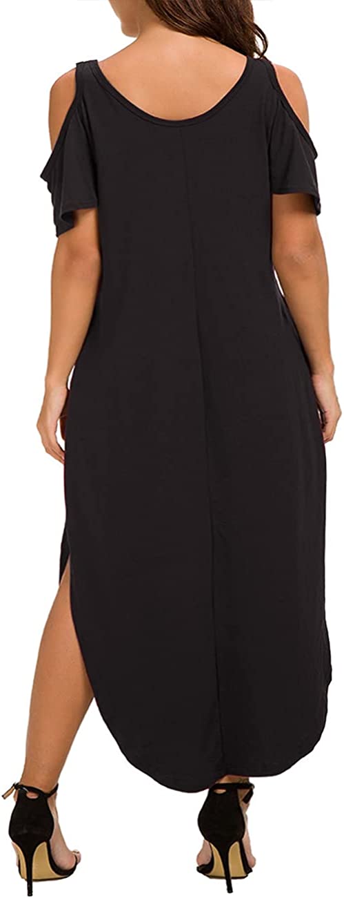 Women's Plus Size Summer Maxi Dresses Short Sleeve Casual Loose Plain Floral Print Split Long Dress with Pockets
