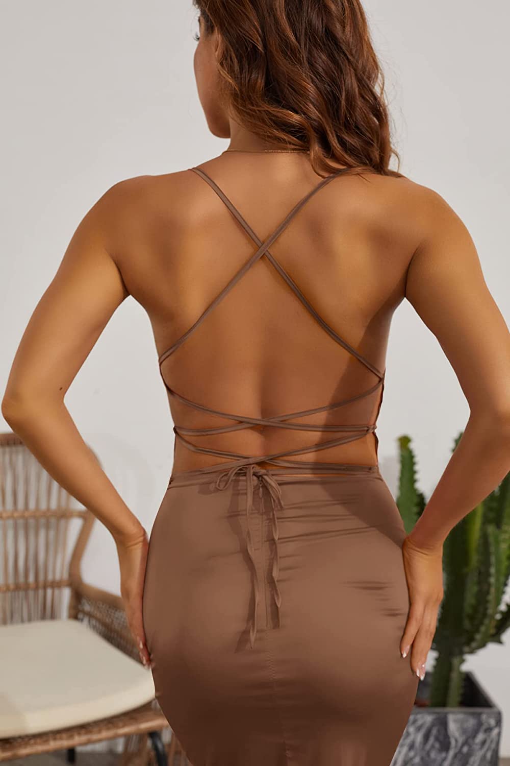 Women's Sexy Spaghetti Strap Backless Lace up Bodycon Party Dress