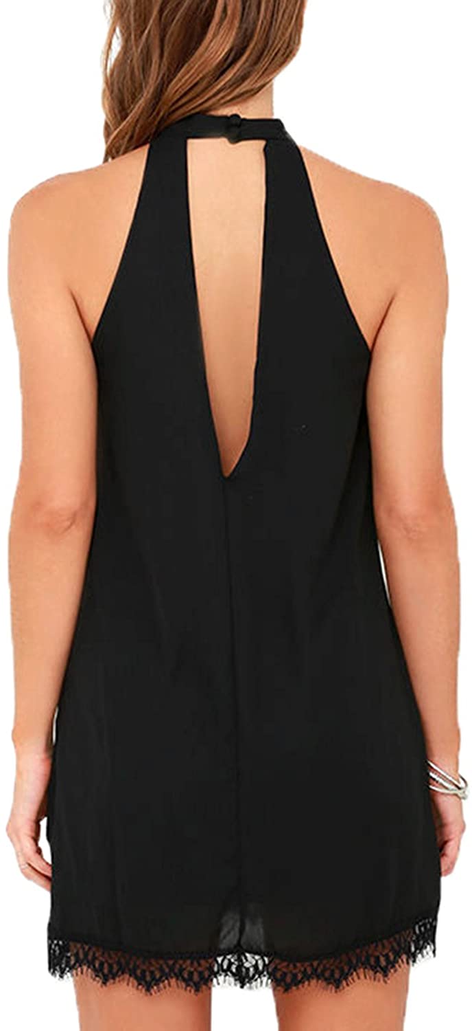 Women's Sleeveless Halter Neck Patchwork Lace Mini Casual Shift Dress