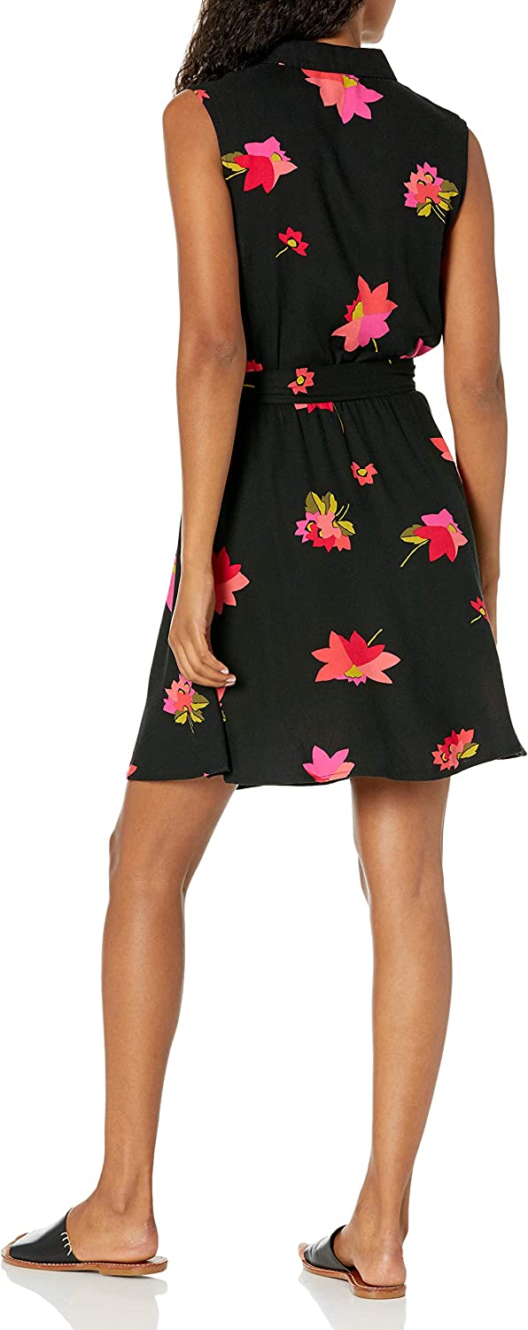 Women's Sleeveless Woven Shirt Dress, Pink/Black, Floral, X-Small