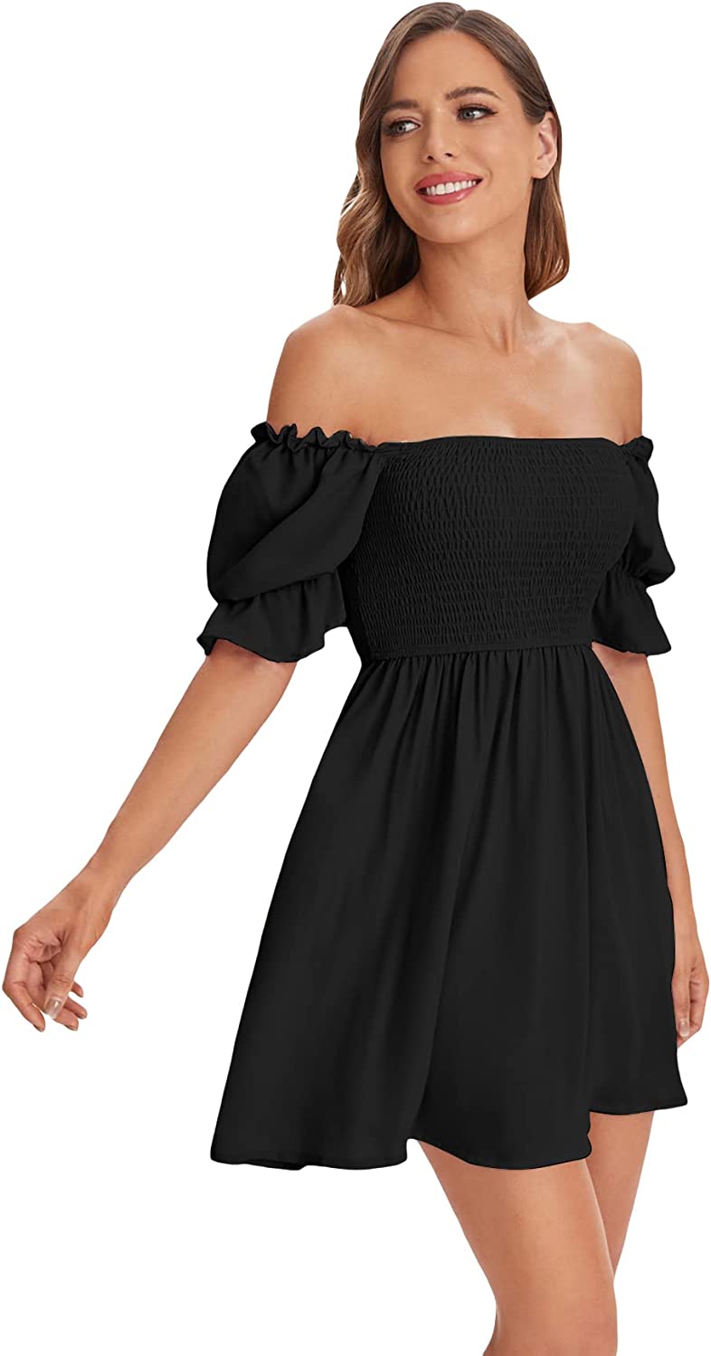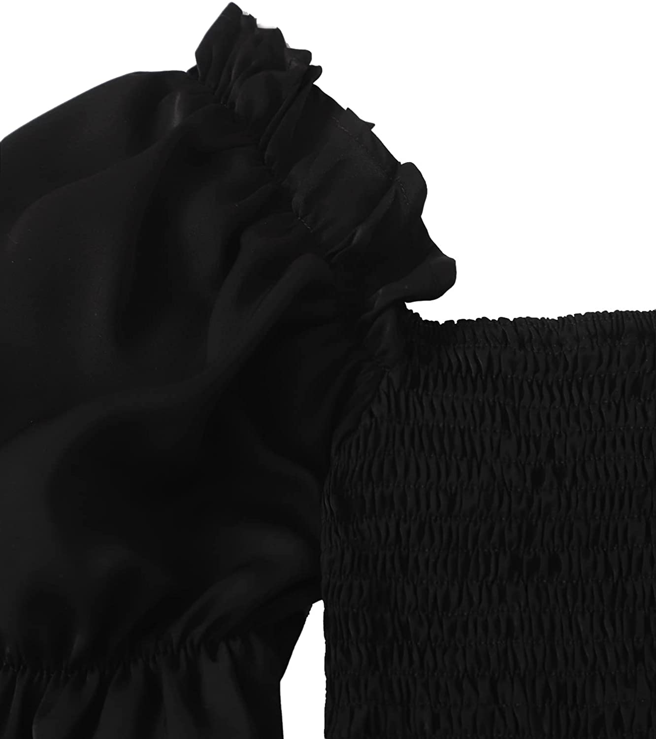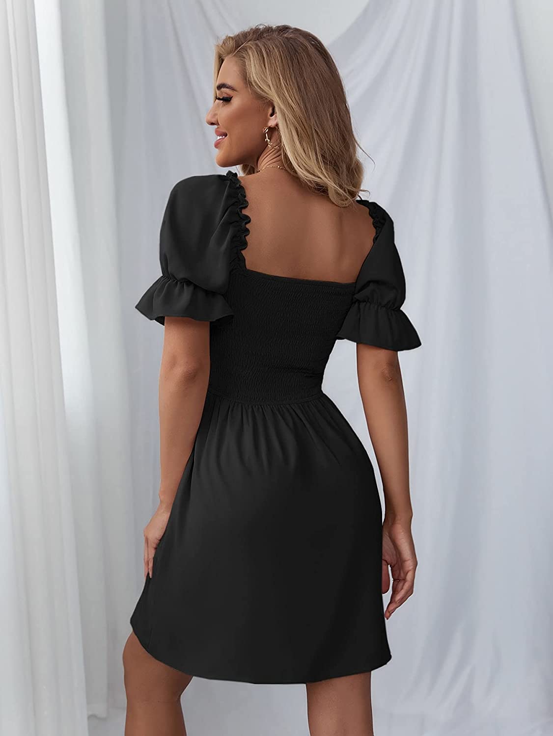 Women's Square Neck Flounce Short Sleeve Shirred Ruffle Hem Dress
