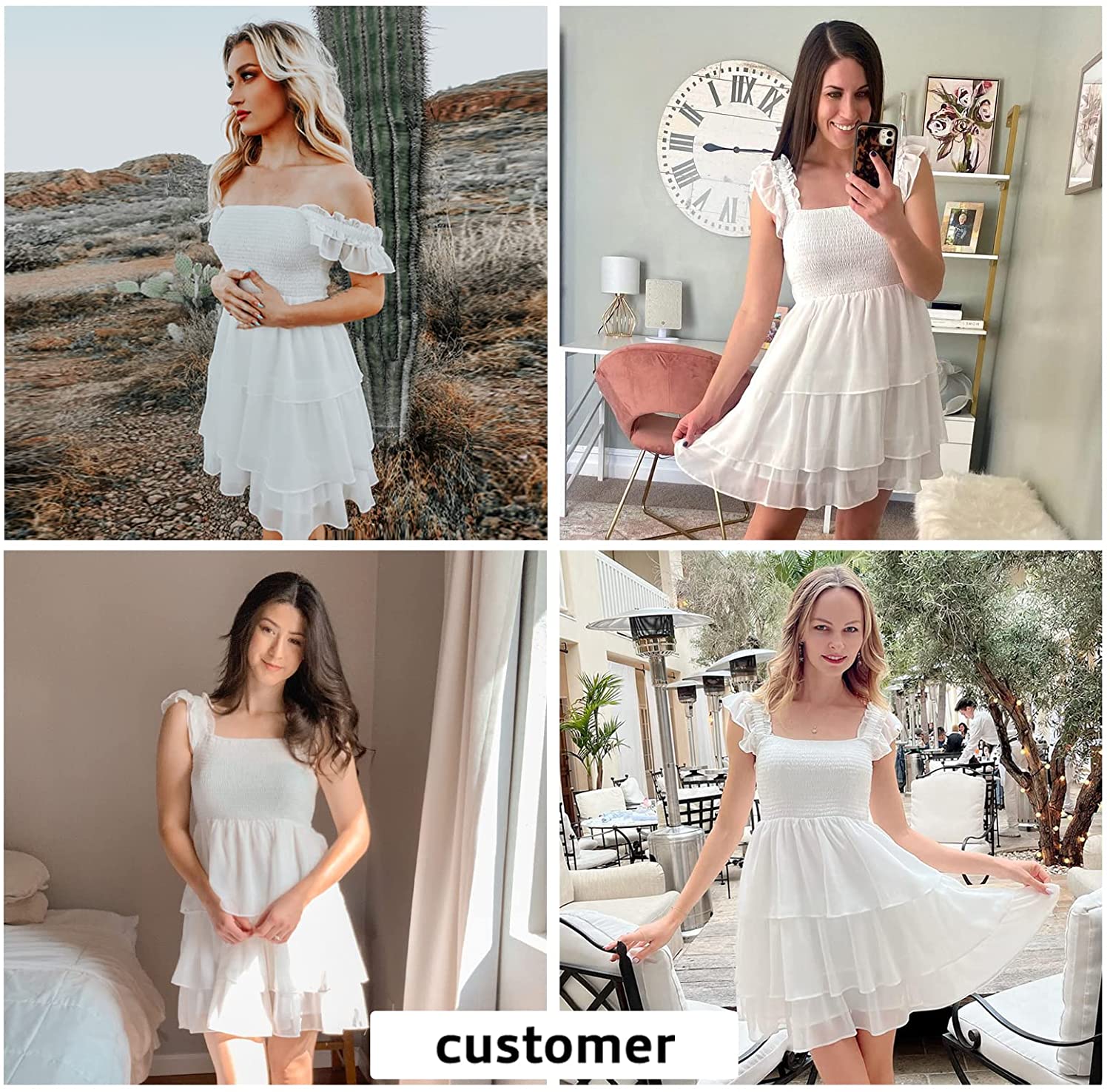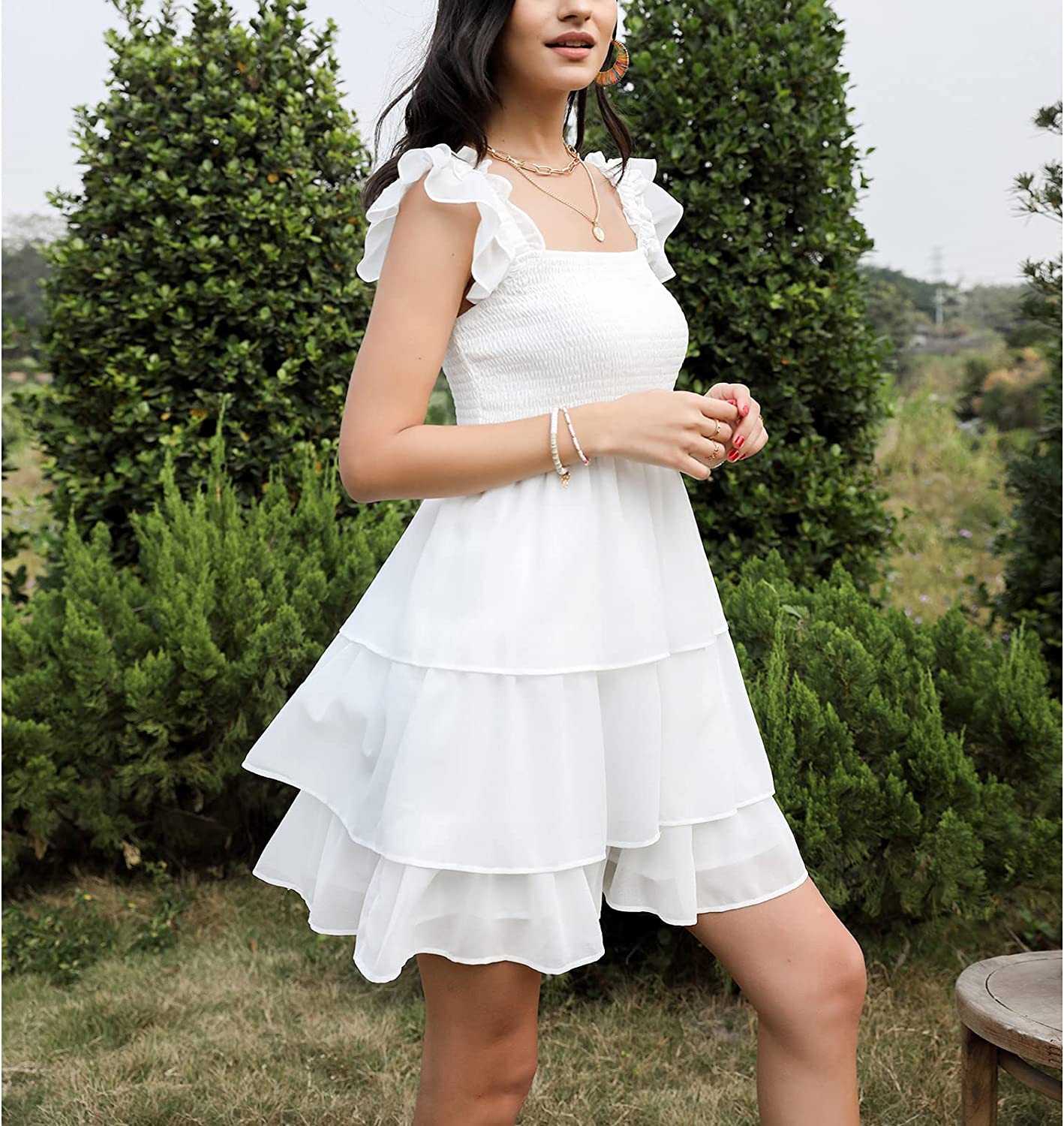 Womens Square Neck Sleeveless Ruffle Dress High Waist Backless Tiered Smocked Strappy Casual Short Mini Dresses