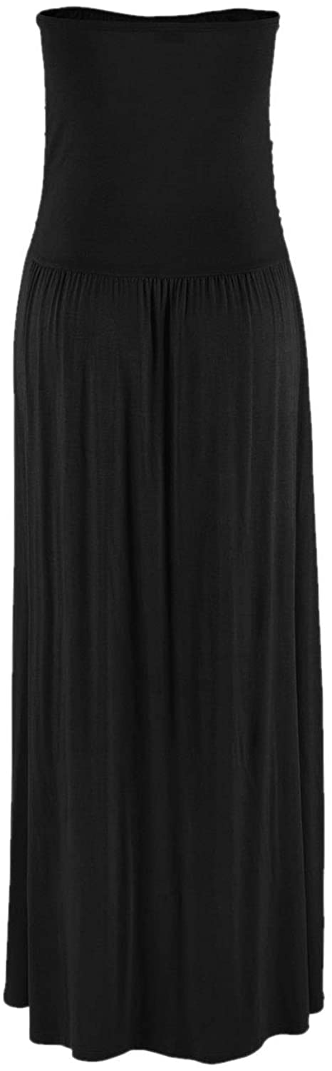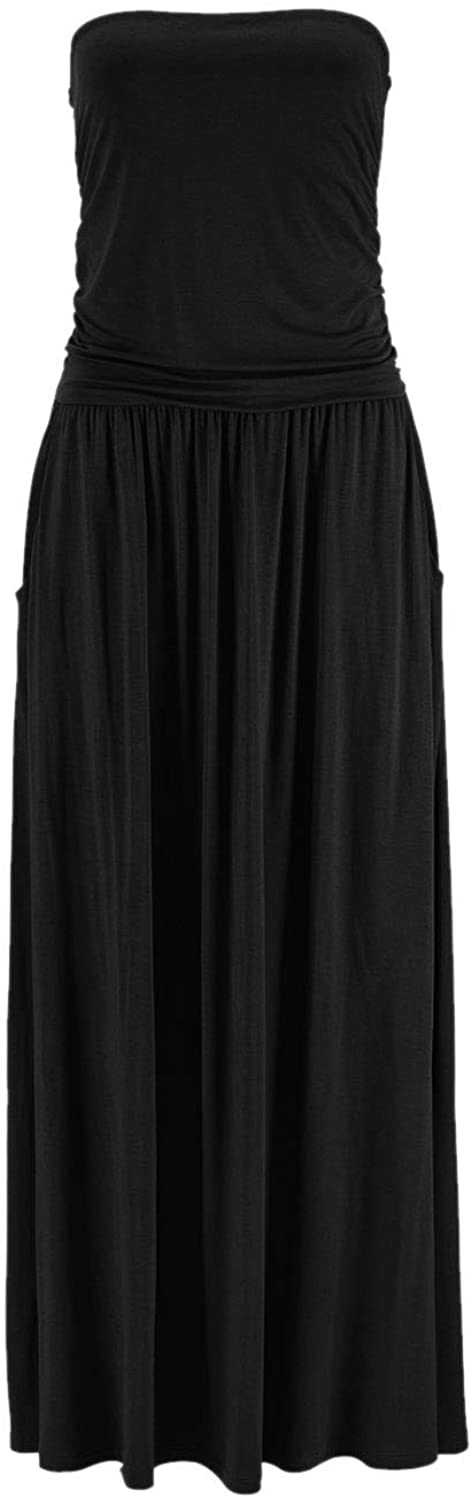 Women’s Strapless Bandeau Summer Long Floral Dress Off Shoulder Beach Maxi Dress with Pockets