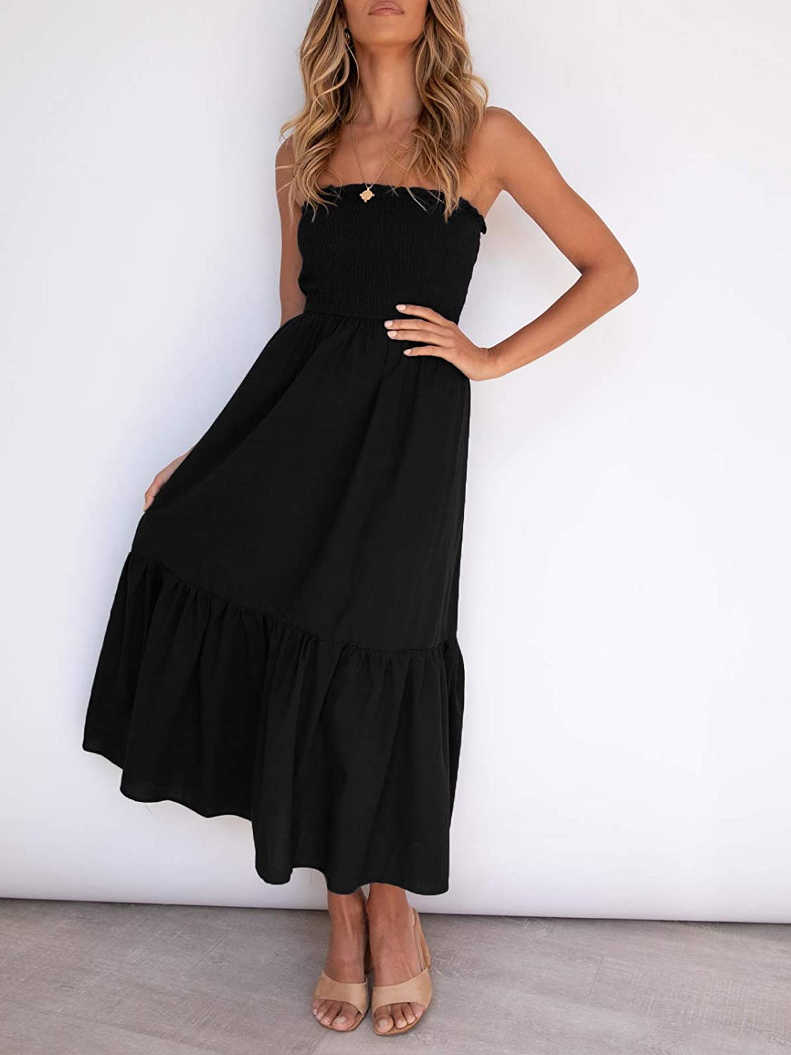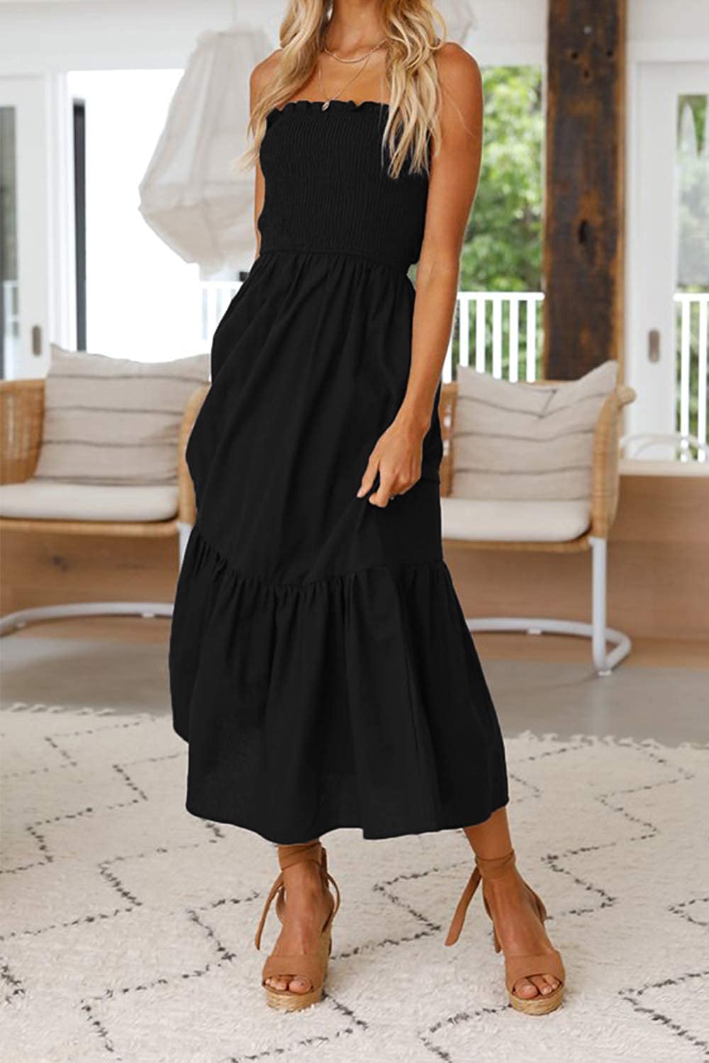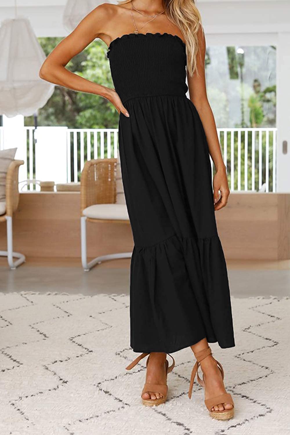 Women's Summer Bohemian Floral Printed Strapless Beach Party Long Maxi Dress