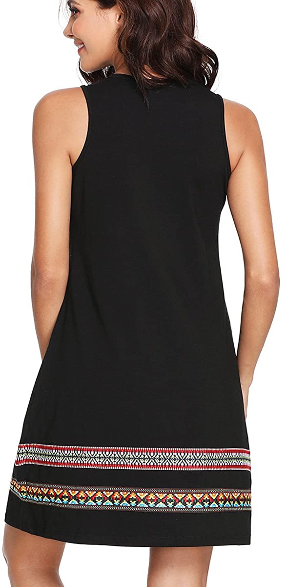 Women's Summer Boho Sleeveless Embroidered Hem Loose Casual Tank Dress