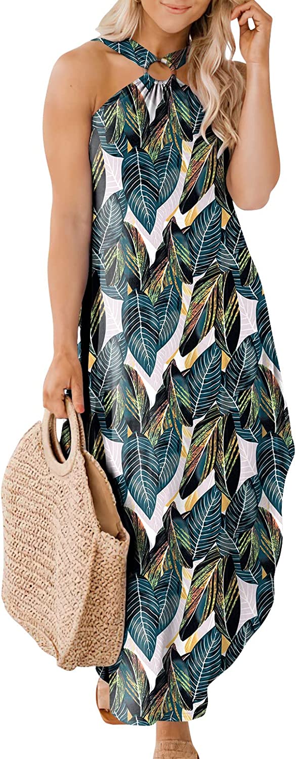 Women's Summer Casual Criss Cross Sundress Sleeveless Split Maxi Long Beach Dress with Pockets
