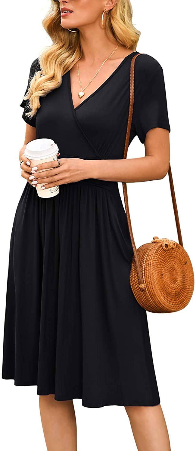 Women's Summer Casual Short Sleeve V-Neck Short Party Dress with Pockets