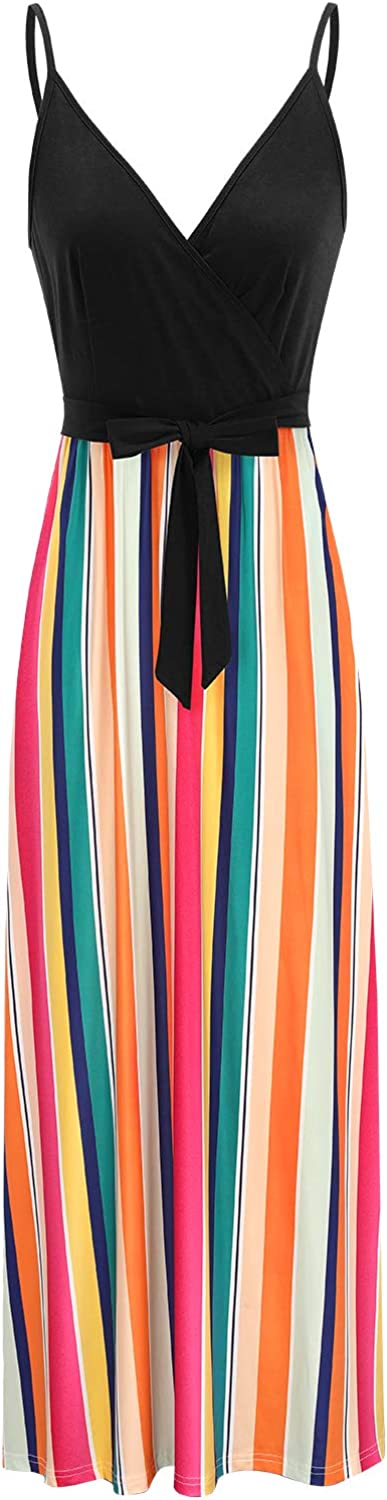 Womens Summer Deep V Neck Floral Adjustable Spaghetti Strap Beach Maxi Dress