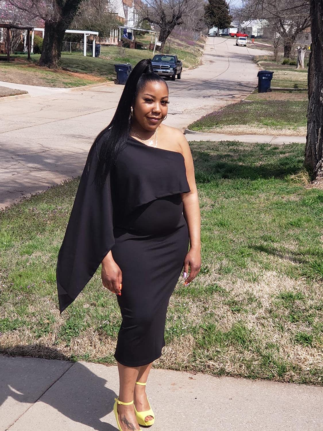 Women's Summer Sexy One Shoulder Ruffle Bodycon Midi Cocktail Dress Burgundy