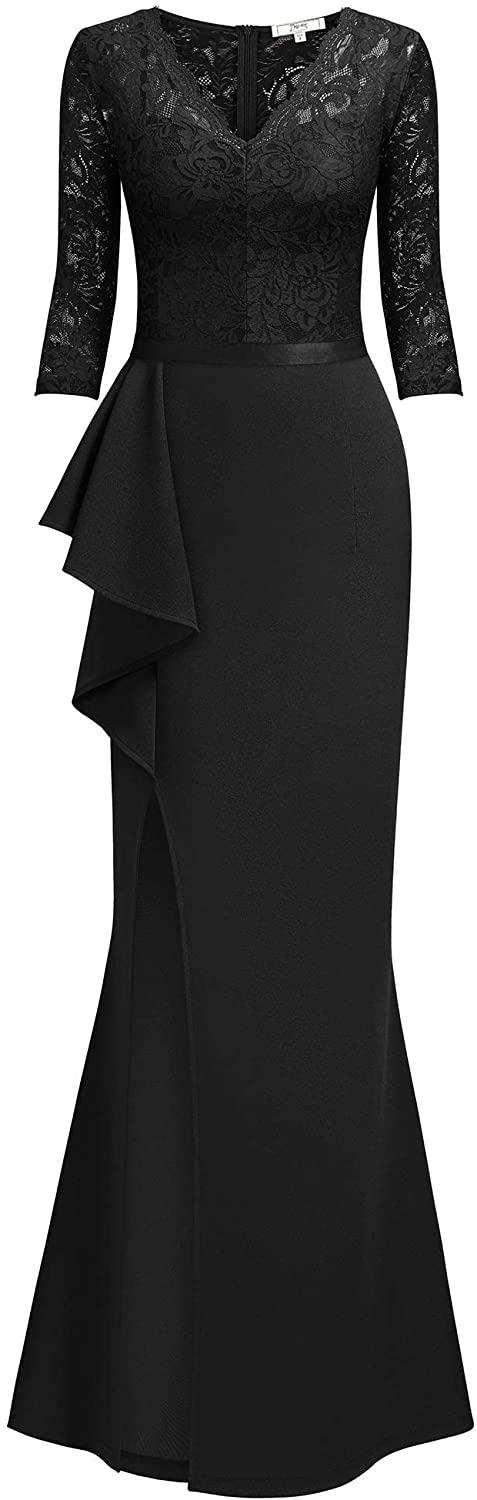 Women's Vintage Floral Lace Ruffle Half Sleeve Evening Party Formal Long Dress