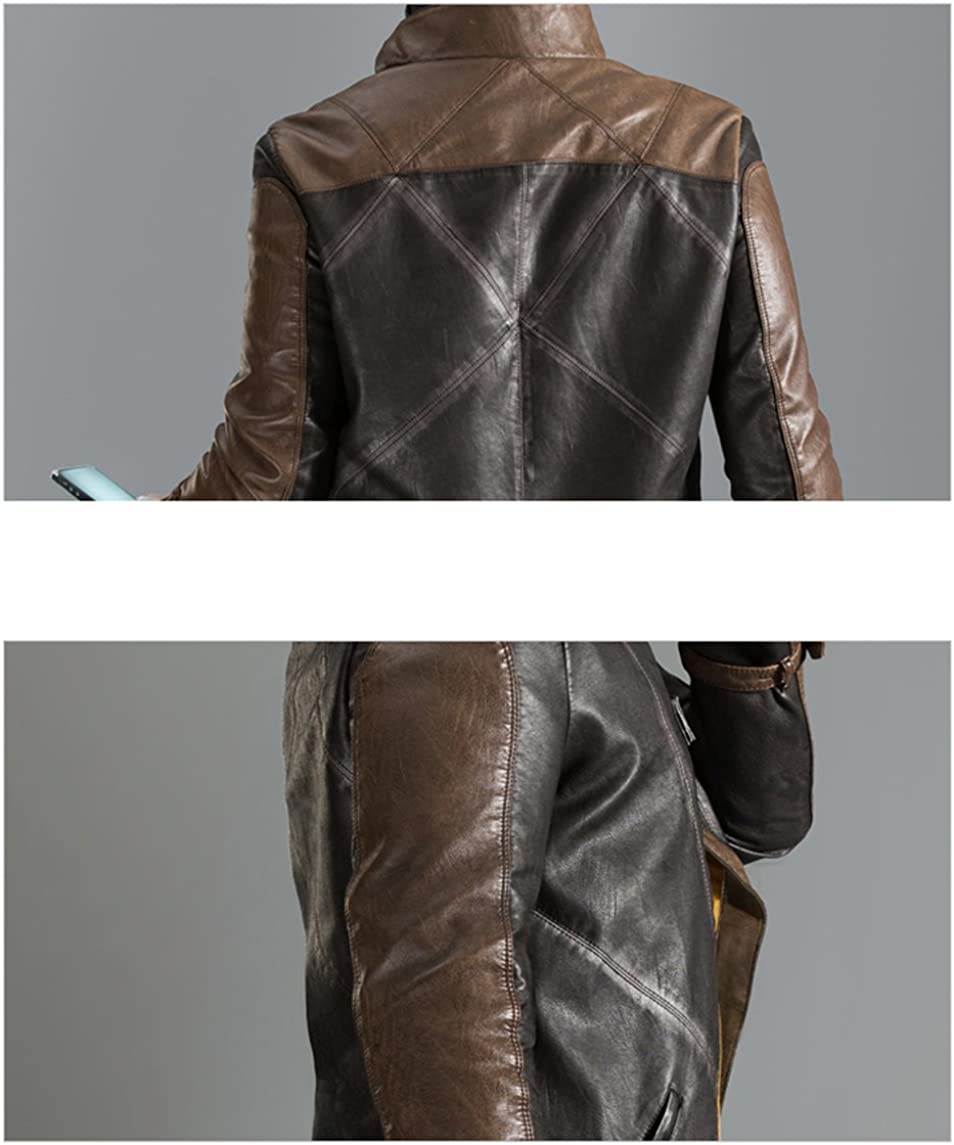 Xfang Men's Brown Leather Trench Coat Distressed Vintage Gothic Cosplay Jacket