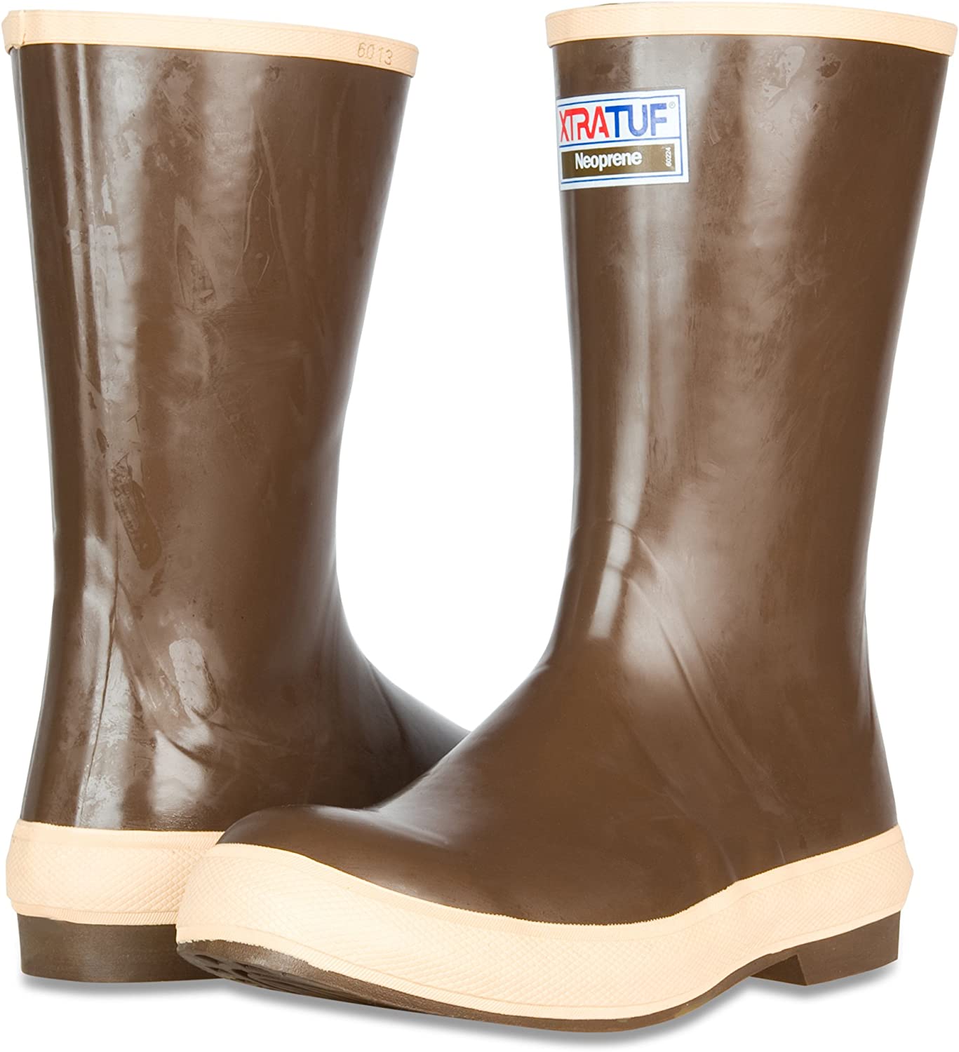 Designed to perform in rough waves and on demanding jobs, these XTRATUF Legacy Series 12" Plain Toe Neoprene Men's Fishing Boots boast a seamless, 100% waterproof construction to keep your feet dry and protected. The flexible neoprene boots are triple-dipped to withstand daily exposure to fish fats, acids, diesel fuel and other solvents. The signature Chevron outsole offers unparalleled slip-resistance on wet decks. Hand-layered construction provides flex and strength at critical stress points. Moisture-wicking Breathe-O-Prene insoles absorb shocks, and their breathable, open cell structure reduces insole drying time. Toe & heel guards protect these men's fishing boots against abrasions, and the heel counter secures the foot in place.