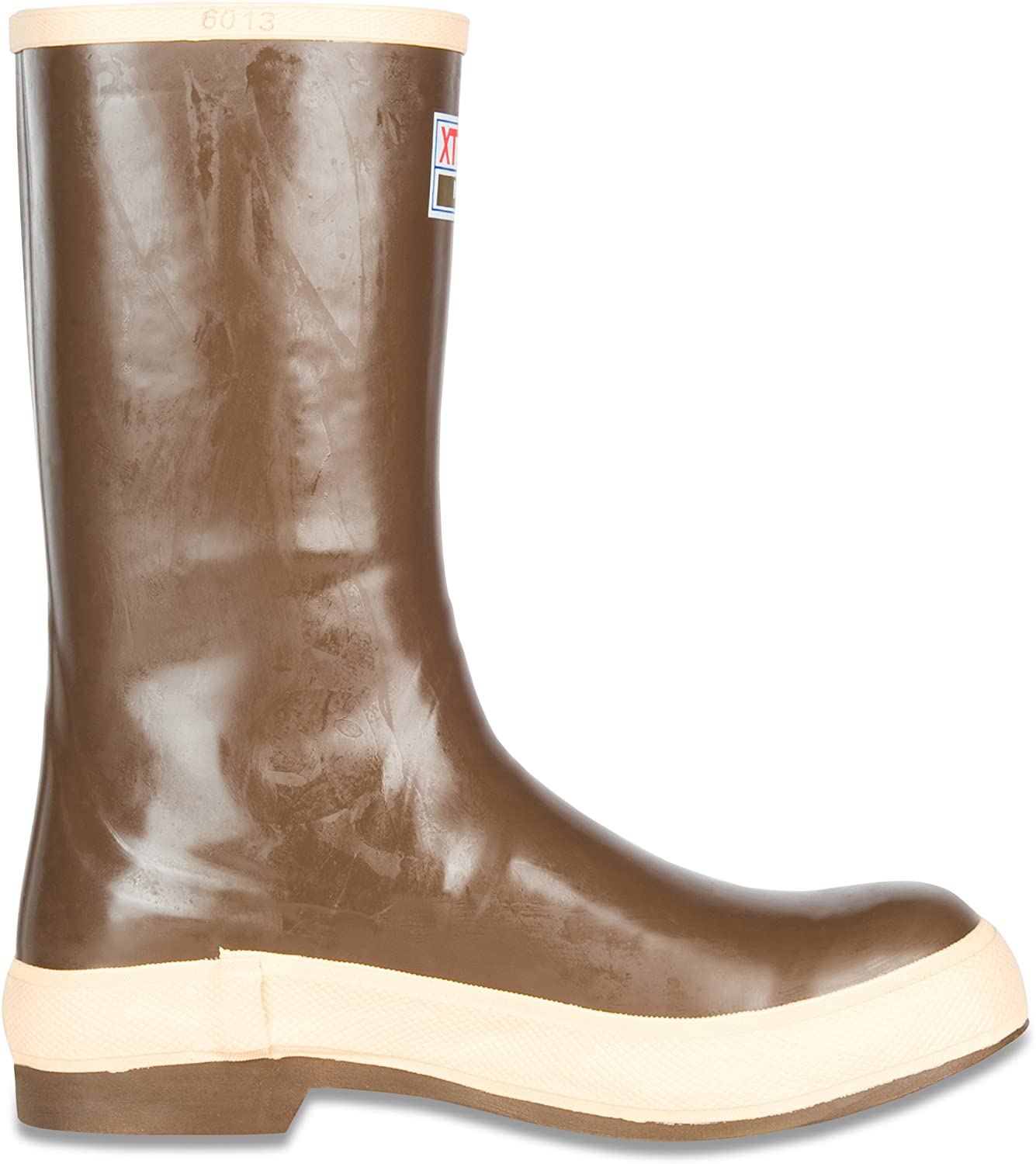 Neoprene footwear will give you flexible, all-day comfort and the best protection against the broadest range of acids, corrosives, and contaminants. Only XTRATUF neoprene pacs offer a "total protection shield" of seamless, watertight protection for the most severe fishing, farm, and work conditions. 100 percent waterproof, seamless construction. Flexible, hand-layered construction. Triple-dipped shells for extra tough, extra watertight protection. Chevron outsole and heel. Built-in cushion insoles with arch support. Available in copper color and size-10.